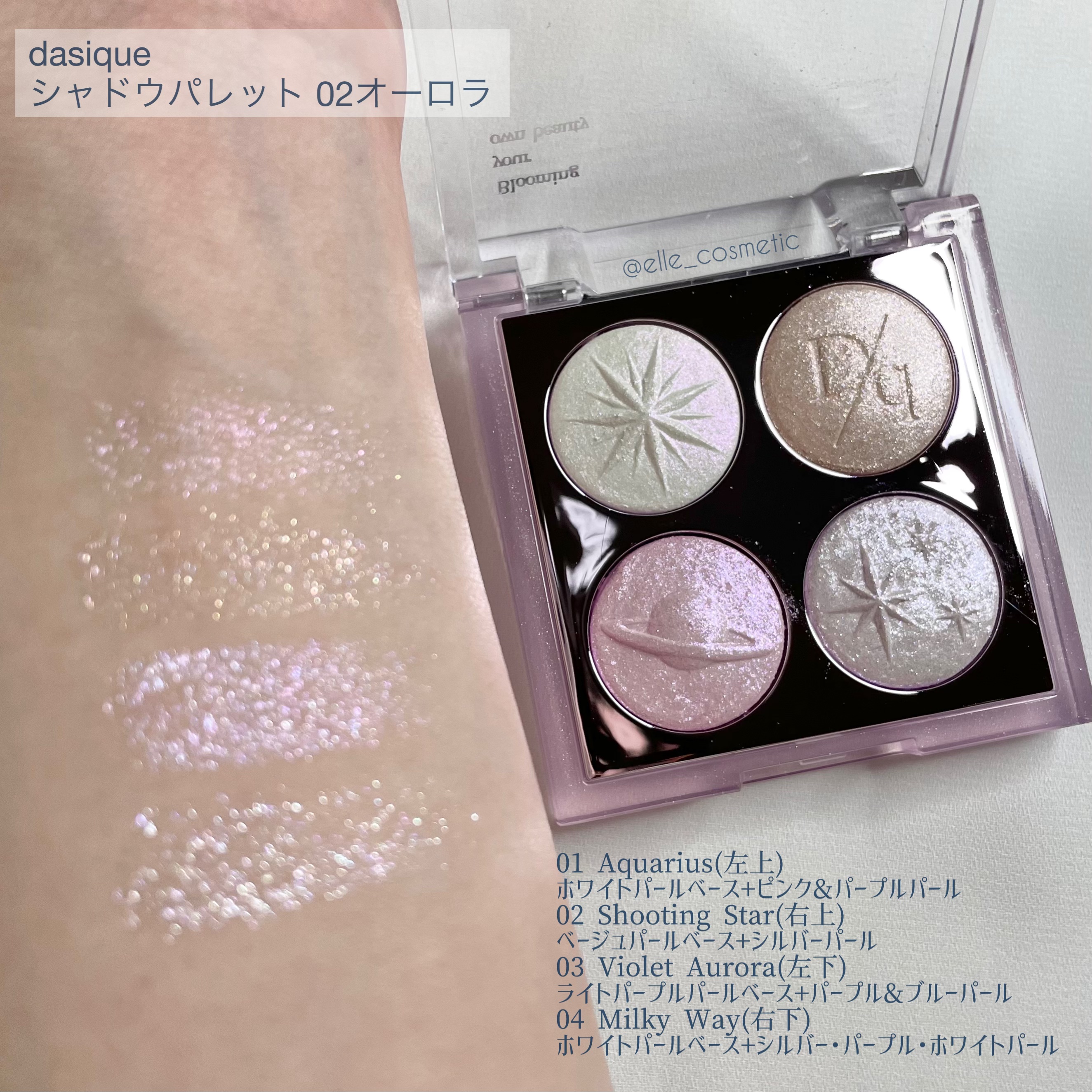 𝐝𝐚𝐬𝐢𝐪𝐮𝐞dasiqueシャドウパレット34トゥインクルマーメイド🐚✨デイジークのラメパレット!シェルモチーフにキラキラグリッターなんて可愛すぎる…♡ブルーやパープル、ピンクなど青みよりのカラーが多め。濡れツヤが綺麗で特に夏はたくさん使い...