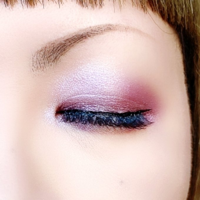 お休みだったのではじめてピンクとパープルのとこ使ってみました!! 下の瞼にも少し濃いめにのせています 凄く綺麗な色〜🥺 このバックステージ の配色最高すぎますよね! ポイントは眉にもプラムカラーを乗せたことです!