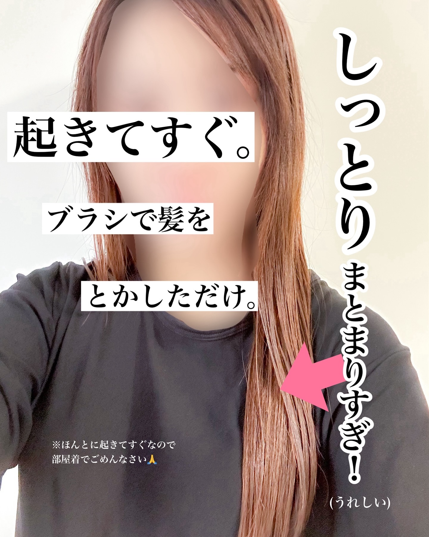 翌朝のパサつきを抑えられ、寝癖がつきにくい独自の処方で、温泉水も配合されて優しく皮脂や汚れを落としてくれます♡ 翌朝、スタイリング前でもストンと落ち着いていたので、忙しい朝も手入れが楽になりそうです♡ 香りもオリジナル開発されたバイオレットムスクの香りで癒されました♡