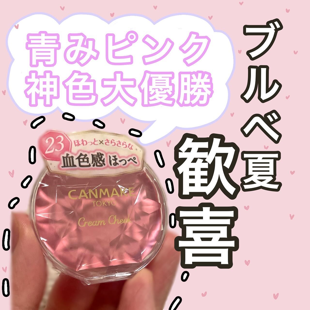 キャンメイクの超王道チークからこれまた王道ブルベ×ピンクカラーのチークが出てたので買ってみました😘 商品名は「クリームチーク 23キューピッドピンク」👼 天使ピンクの名前の通り、白みがかったふんわり明るめなピンクでした🩷 新色の23は見た目より肌に塗った時の方が青みを感じるので、思っていたよりドブルベなブルベ夏の方なんかに良さそう!✨
