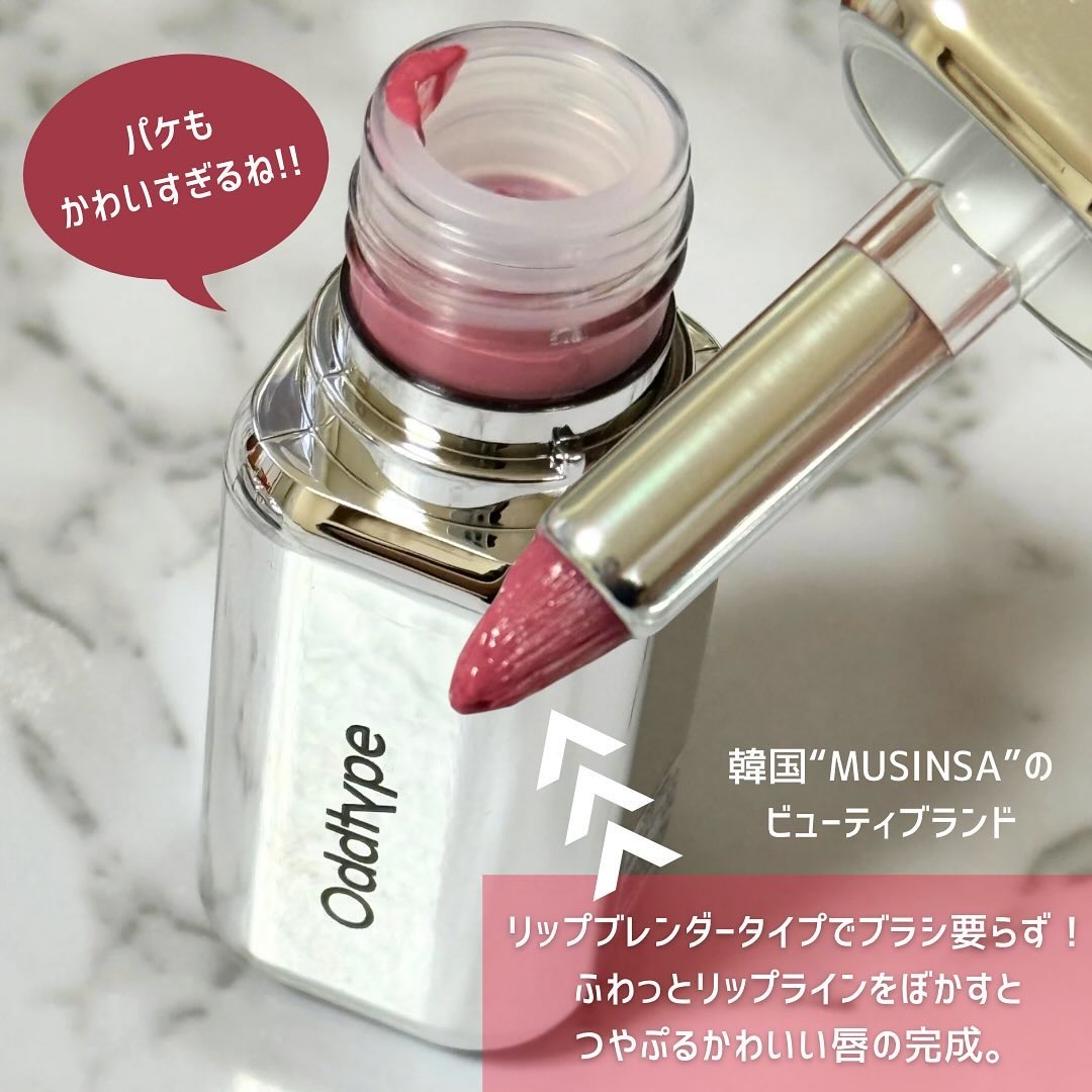韓国オンライン・ファッション・プラットフォーム ”MUSINSA”のビューティブランド💄 「oddtype」が2024年10月に日本上陸しているよ🙌✨ べたつかずしっとり潤い感じる塗り心地 鮮やかな発色でありつつ、唇の表情を残すような透け感がありライトで艶やかな仕上がりに💓 私は565のモーヴっぽいカラーと651の肌馴染みよいピンクがお気に入りです🫶
