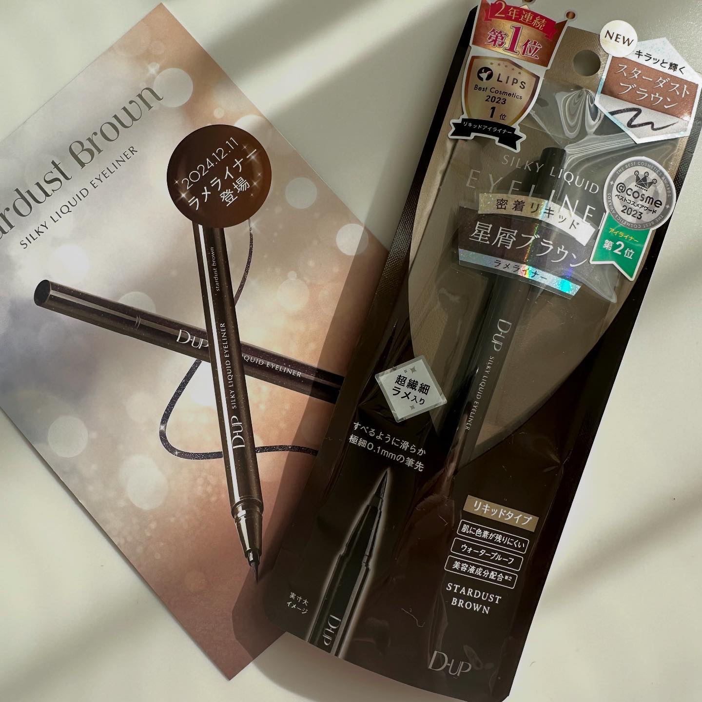ディーアップ初のラメライナースターダストブラウン💎⸒⸒ナチュラルなブラウンに、シルバー×青の繊細なラメがたっぷり入った星屑ブラウン🌟⋆꙳ 上品さのあるラメ感×ブラウンで大人っぽく、デイリーメイクにも取り入れやすいナチュラルさがお気に入り💙 ̖́- この冬は”星屑ブラウン”を毎日メイクのアップデートに🎄✧*。