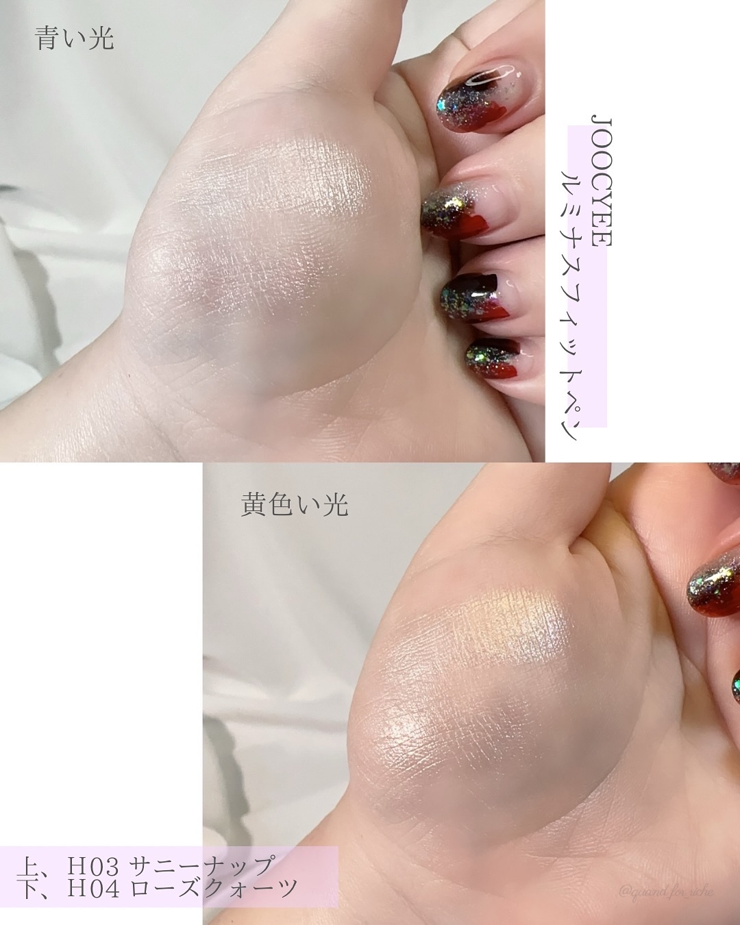 - <H01 ムーンライト> 水、トチャカ、1,2-ヘキサンジオール、グリセリン、合成フルオロフロゴパイト、プロパンジオール、ペンチレングリコール、ヒドロキシアセトフェノン、塩化Ca、カプリリルグリコール、グルタミン酸ジ酢酸4Na、マイカ、ベタイン、グリセレス-26、BG、グルコース、香料、ラフィノース、ヒポファエラムノイデスエキス、フヨウ花エキス、酸化スズ、ヒアルロン酸Na、酸化チタン <H03 サニーナップ> 水、合成フルオロフロゴパイト、グリセリン、プロパンジオール、マイカ、トチャカ、ペンチレングリコール、ヒドロキシアセトフェノン、塩化Ca、1,2-ヘキサンジオール、カプリリルグリコール、グルタミン酸ジ酢酸4Na、酸化スズ、ベタイン、グリセレス-26、BG、グルコース、香料、ラフィノース、ヒポファエラムノイデスエキス、フヨウ花エキス、ヒアルロン酸Na、酸化チタン、酸化鉄 <H04 ローズクォーツ> 水、合成フルオロフロゴパイト、グリセリン、プロパンジオール、トチャカ、ペンチレングリコール、ヒドロキシアセトフェノン、塩化Ca、1,2-ヘキサンジオール、カプリリルグリコール、グルタミン酸ジ酢酸4Na、シリカ、酸化スズ、ベタイン、グリセレス-26、BG、グルコース、香料、ラフィノース、ヒポファエラムノイデスエキス、フヨウ花エキス、ヒアルロン酸Na、酸化チタン、酸化鉄