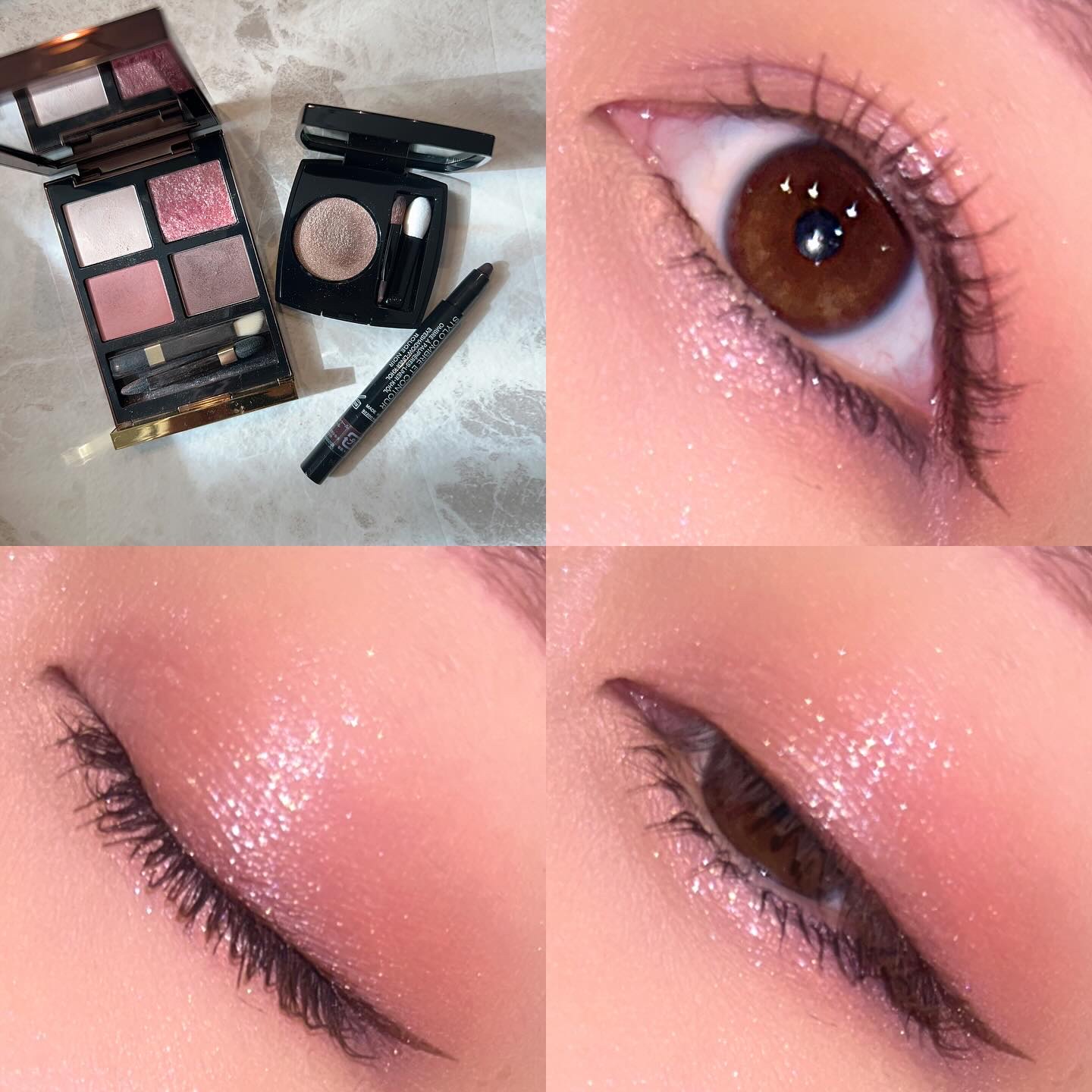 今回はいつも以上にしっとりした粉質✨ 4つとも可愛すぎて選べませんでした😂 ツヤ感強めなゴールドとブラウン。 めちゃくちゃ好きなやつです、はい。 右下はゴールドとシルバーのラメ✨ CHANELらしいプラムカラーのパレット。 発色も穏やかでふわっとしてるよ💐 今回はどれもしっとりした粉質だけどこれが一番しっとり感強めでクリーミーに感じたかな🤔 こっくりしたオレンジが可愛い🍊 これは落ち着いた配色…と思いきやキラッキラなベビーピンクのラメよ🫣 ベーシックなのに華やかにもなるこのラメにやられました🫠笑