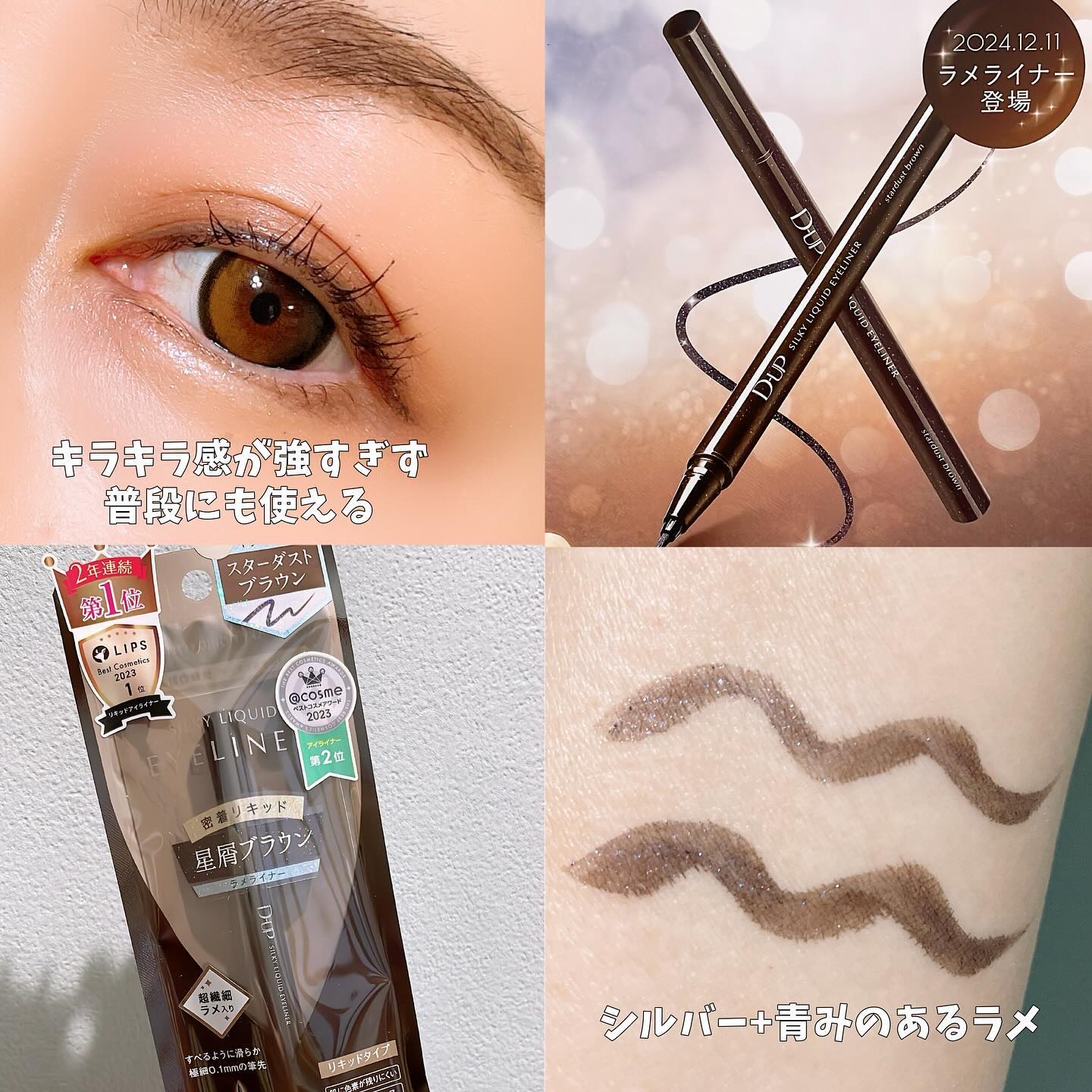 シルキーリキッドアイライナーに新色が登場するよ🥰 新色の”スターダストブラウン”はなんとラメ入り透け感のあるダークブラウン×繊細なラメの組み合わせが可愛すぎる✨ 輝き方が上品だから大人でも使いやすい👌🏻 容器にもラメが入っていて可愛かった!! アイライナーとしても優秀だからおすすめ🙆🏻♀️