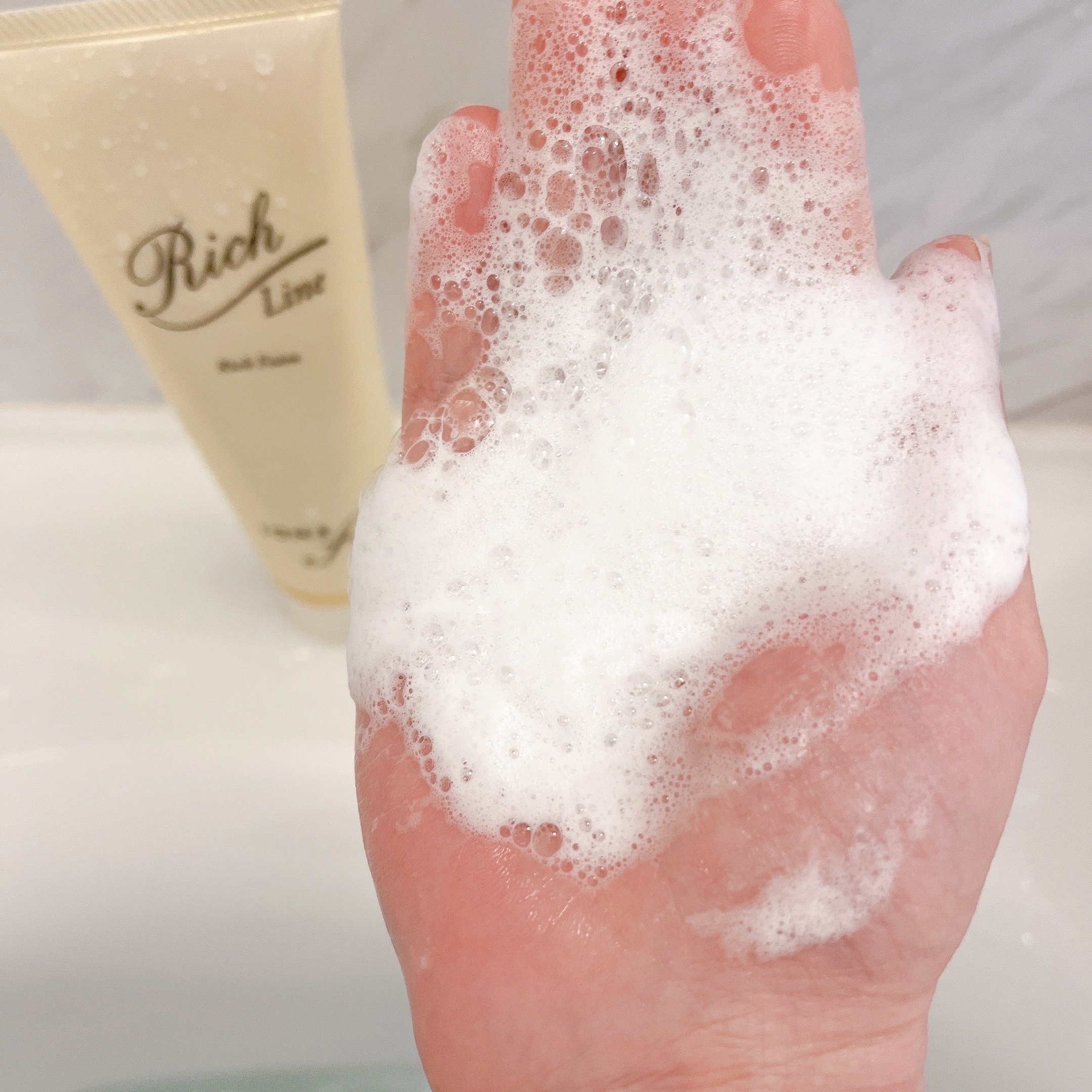 泡タイプだから、プッシュするだけで泡で出てくるところもいいよね。 泡も、きめ細かくてとっても気持ち良いの。 でもふわっと香って、しつこくない甘い香りは良い感じだよ。