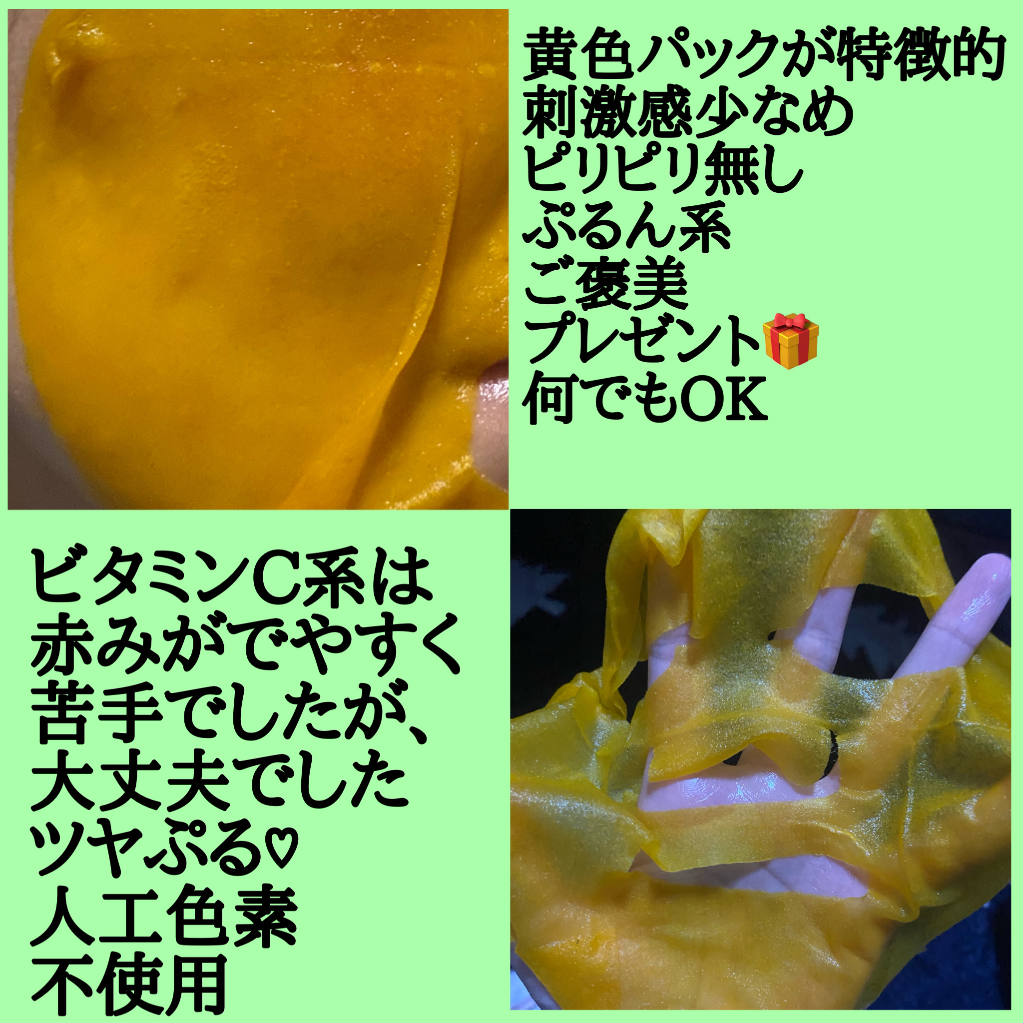 | スキンケアランキング第39位 | シートがみかん色でびっくり! とろっとろの液が含まれていて 貼り付けたらぴたーっとくっついてすごく気持ちいい! | 詳細を見る | |
