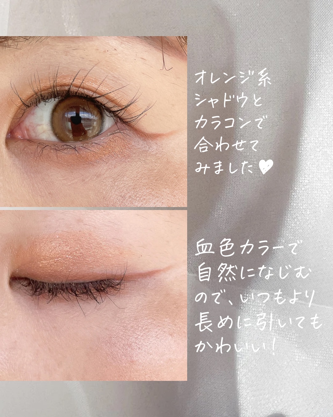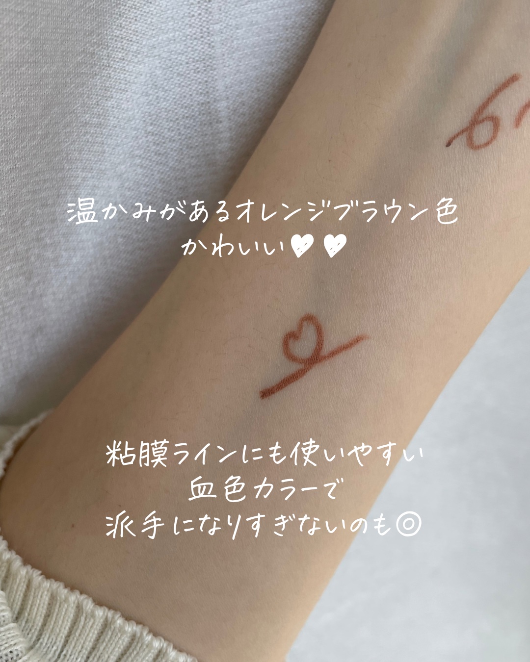 極細ラインがなめらかにするするとひける描きごこちと、にじみにくく、ピタッと密着してくれるデジャヴュの「密着アイライナー」極細クリームペンシルから冬にぴったりな温かみのあるカラー「オレンジショコラ」が限定で発売されるよ👏 ブラウン×オレンジの明るめな優しいカラーだよ!私はポイントで目尻だけに使って、いつもより長めに引くのが好きな使い方♡ オレンジショコラなら優しく際立たせてくれたよ✨