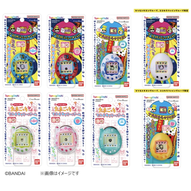 - 保湿バームとして使えるコスメです。 1996年より発売された初代「たまごっち」、1997年より発売された「新種発見‼たまごっち」、2004年より発売され今年11月23日に20周年を迎える「祝ケータイかいツー!たまごっちプラス」のたまごっち本体型ミニチュア容器に入っており、また、当時のパッケージをイメージした懐かしいパッケージデザインになっています。 約40.5×33mmで、ポーチなどに入れ持ち運びしやすいサイズ感です。 “ストロベリーの香り”“キャンディの香り””ミルクの香り“が優しく癒し、これからの乾燥が気になる唇や指先などにお使いいただけます。 さらにマツモトキヨシグループ、ココカラファイングループ限定で初代たまごっち白(ミルクの香り)、新種発見‼たまごっちイエロー(ストロベリーの香り)を発売いたします。 2024年11月下旬発売予定