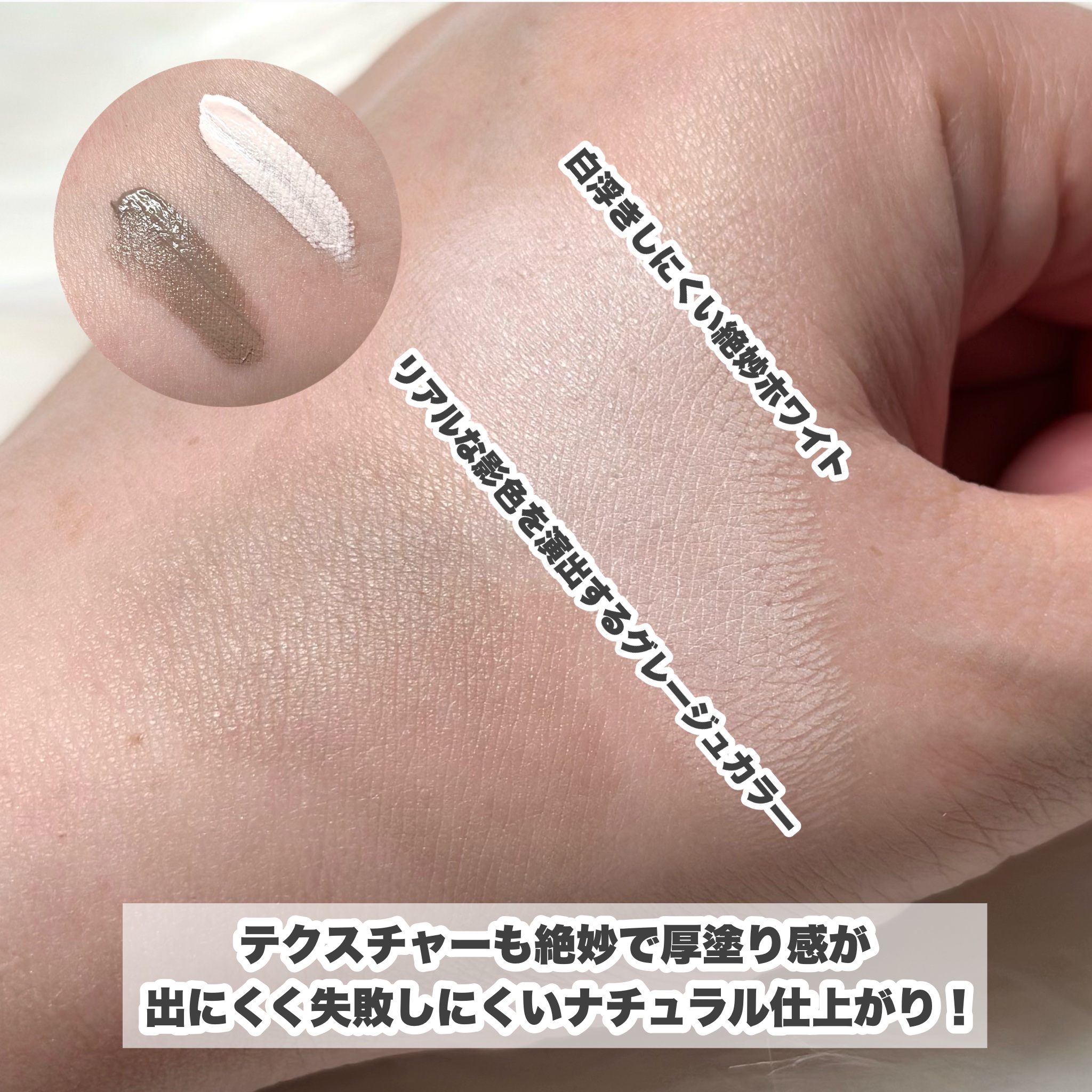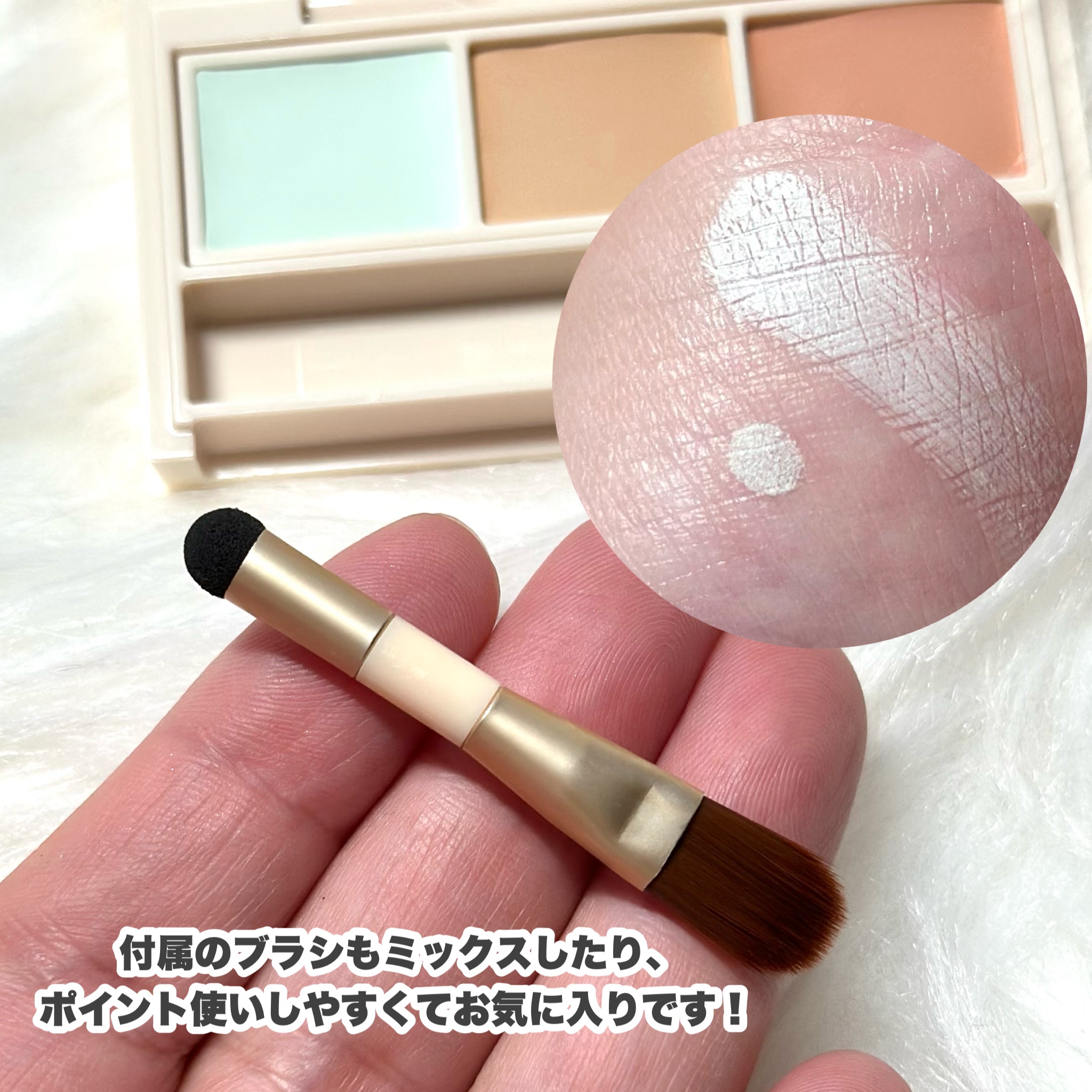ありそうで無かった、リキッドタイプのマットのハイライト ほどよい緩さのテクスチャーでポンポンと指でなじませやすくて真っ白にならない透け感もいい 濃いめのチークがパステルカラーになるから毎日のメイクが楽しめる! ふわっとしたスフレテクスチャーで境目がいい感じにぼやけるので失敗しにくいよ