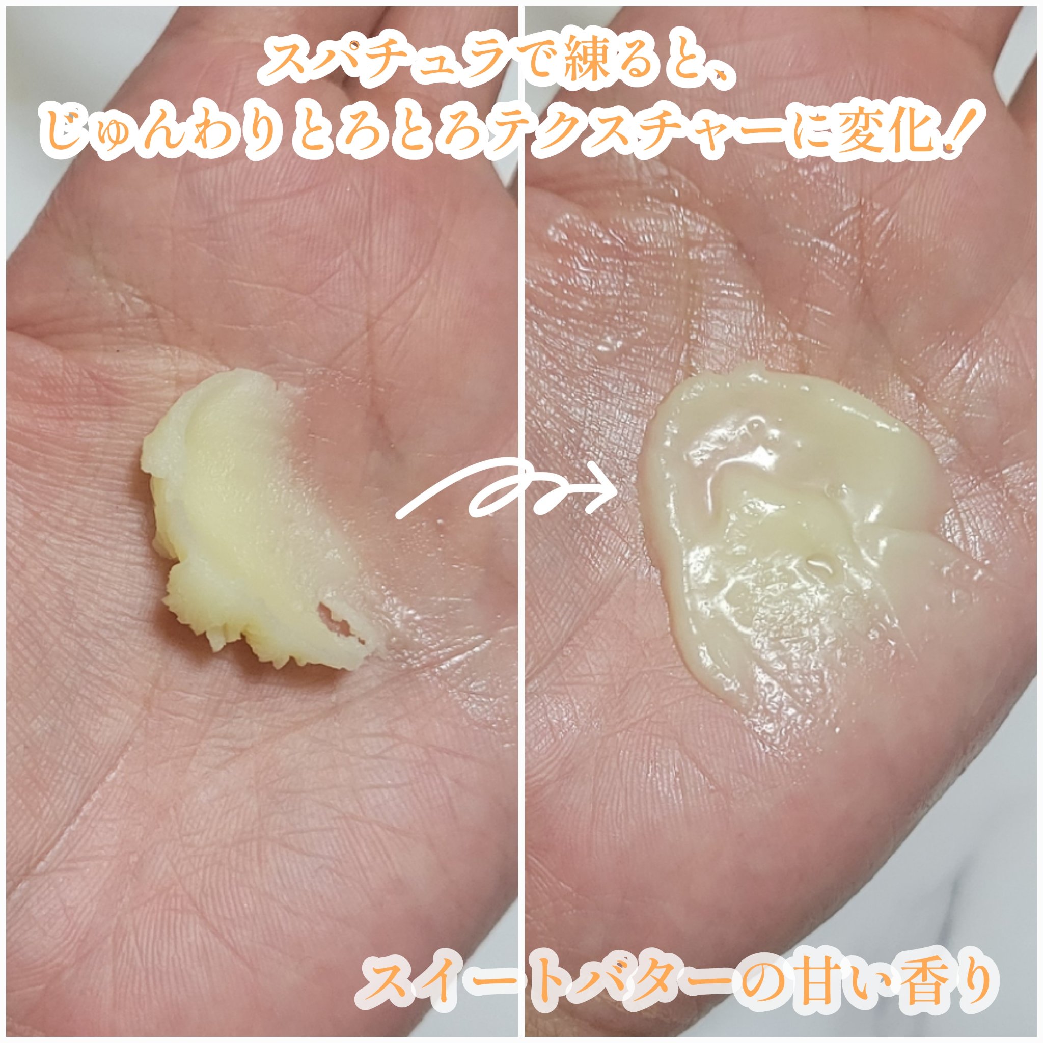 | あっという間に溶けてオイルとクリームの中間みたいになります。溶け残りしづらい👍️ | 詳細を見る |