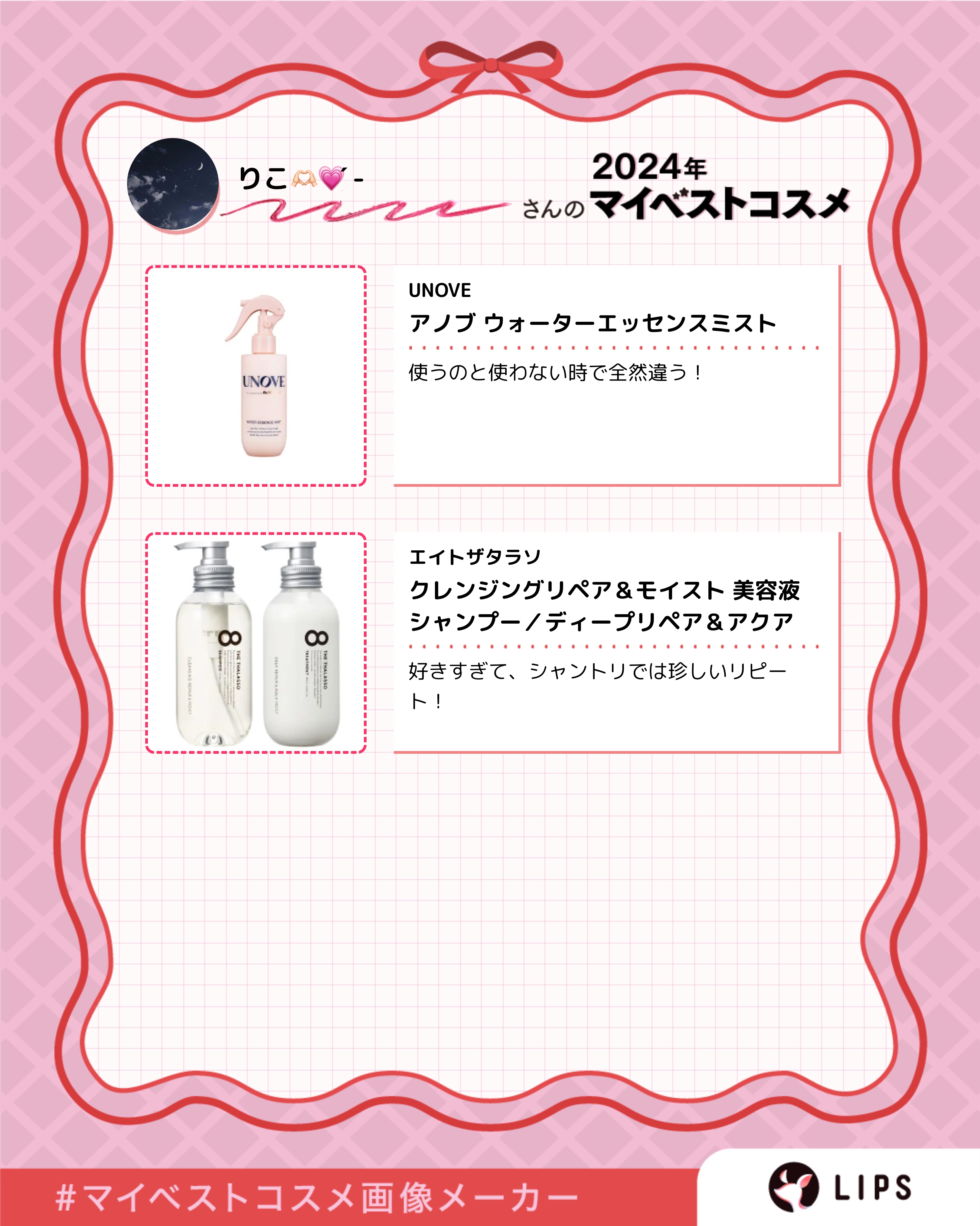 毎日スキンケア・ヘアケア・メイクアップに向き合った一年で、たくさんのコスメと出会いました。 もちもちな肌、髪のツヤ、メイクの仕上がりのいい日は、見た目だけじゃなく心まで豊かにしてくれました。😌 2024年のいまりこ的ベスコス12アイテムの紹介です。🫶