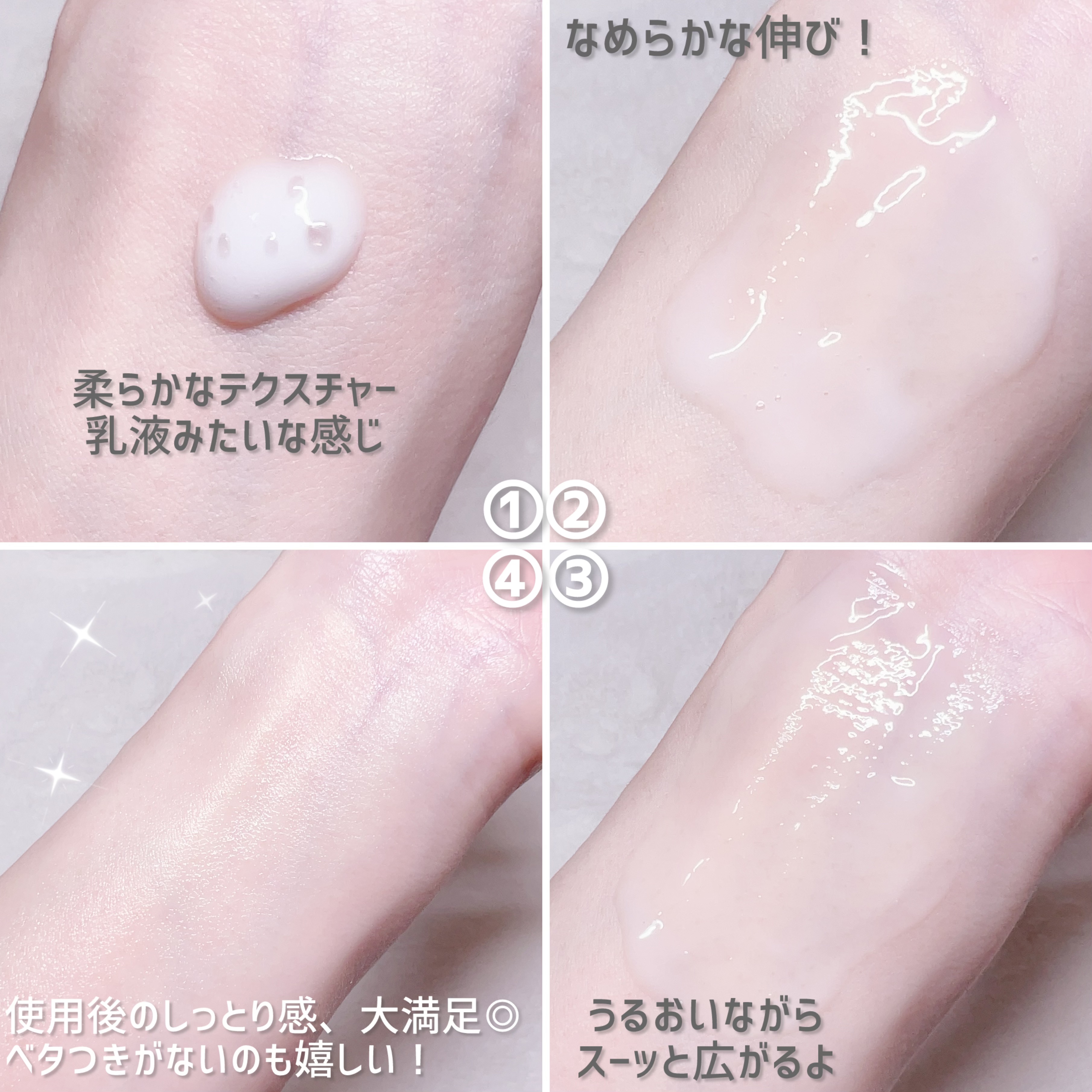 | テクスチャーは乳液のような水分たっぷり✨ 伸びが良くすーっと馴染み ベタつきがなくしっとりするので 軽い使い心地で使いやすいです🙌 | 詳細を見る | |
