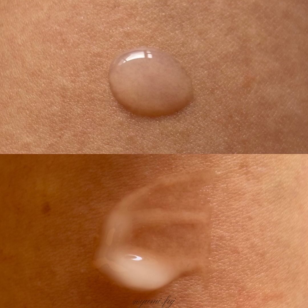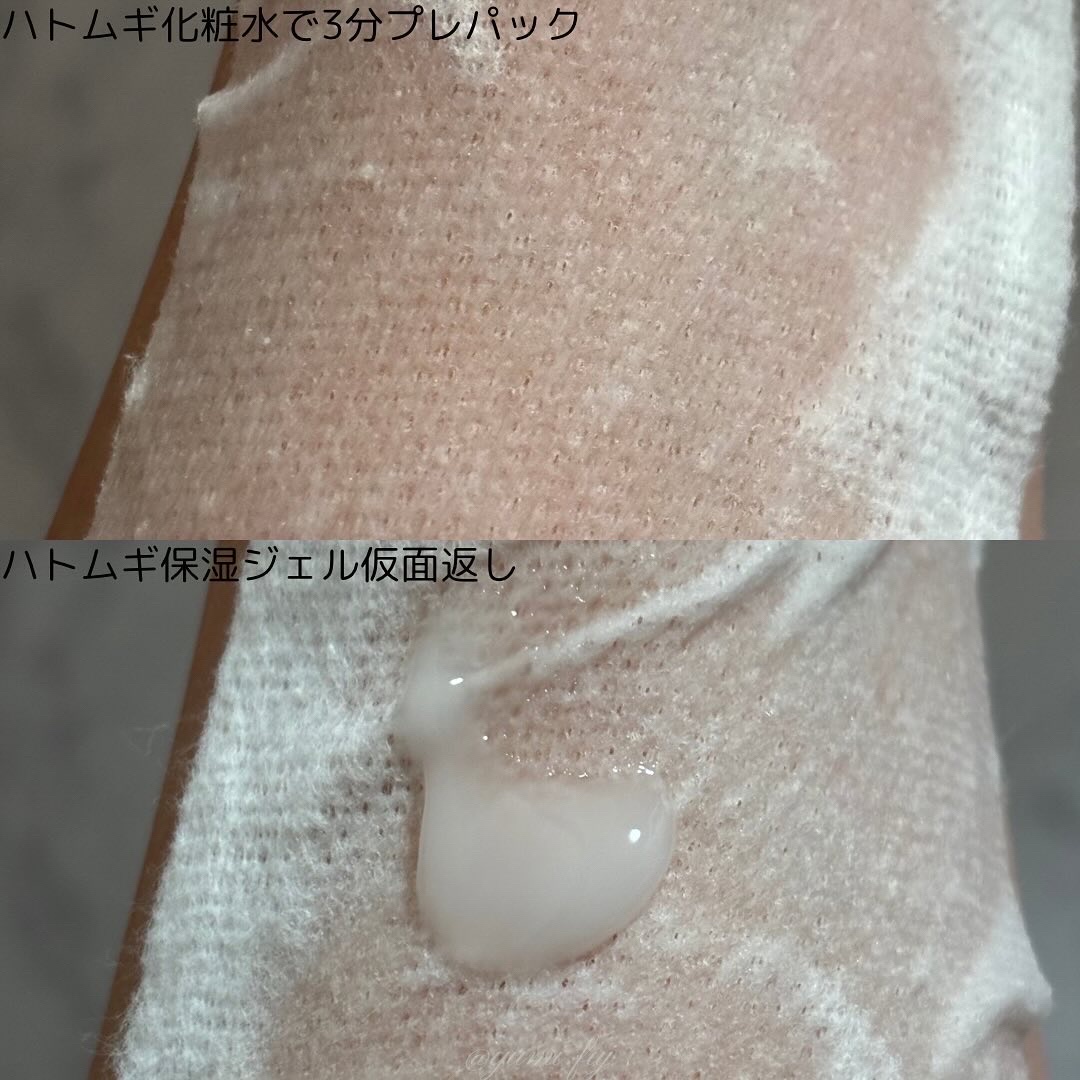 乳白色でサラッとしたテクスチャー。コットンパックが一番好きな使い方。 みずみずしいジェルでベタつかず使えます。ハンドプレスするともっちりしてきます。 しっかり保湿したい日には #ハトムギ保湿ジェル仮面返し がオススメ。どちらも大容量なの腕や足のケアにも使っています。