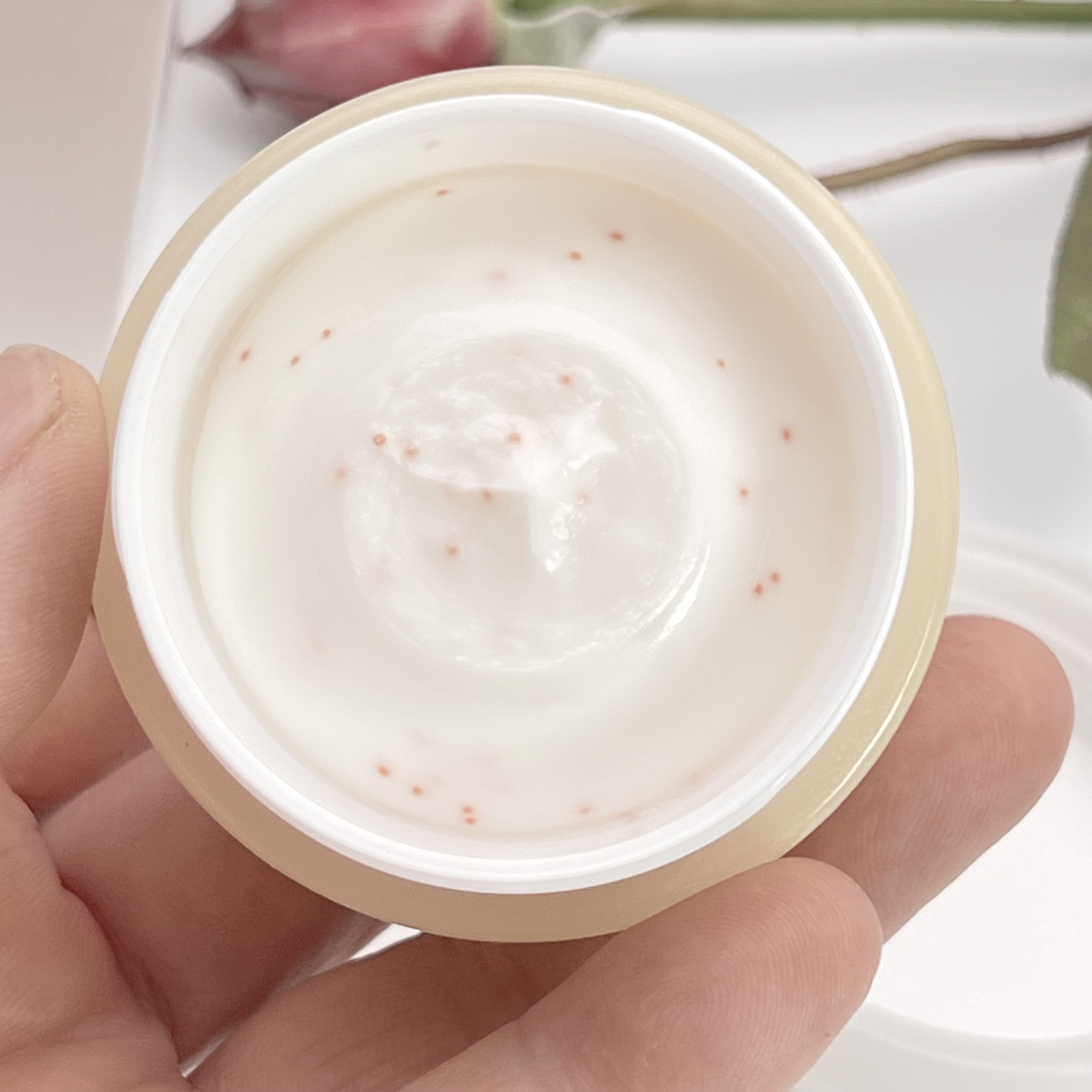 手ごわい乾燥に立ち向かう高保湿クリーム💛 白いクリームにオレンジ色のつぶつぶとしたビタミンオイルカプセルが入っていてます💛 こっくりとしたテクスチャーだけど肌に馴染ませるとスルスルと溶け込むように馴染んでしっとりツヤツヤな肌に♡ 保湿力をしっかり感じるけどべたべたしないところがお気に入り!