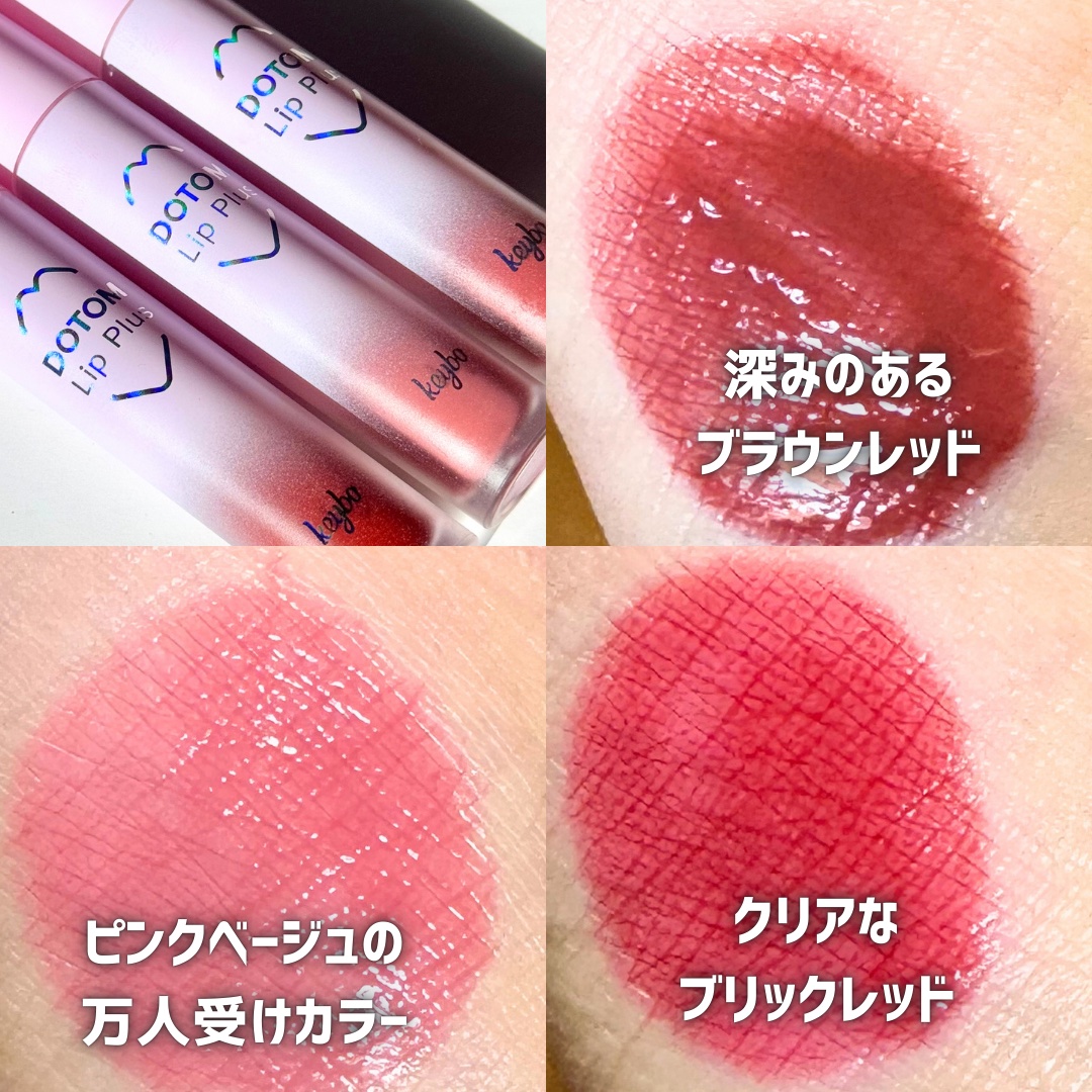 グロスっぽい塗り心地 ティントだから落ちにくい 個性的なカラーもあり 乾燥もしないし口紅がうるツヤです☺︎︎✨✨ 私が好きなカラーは1.2.3.6が好きです😘 008や010はすごく個性的だと思いました