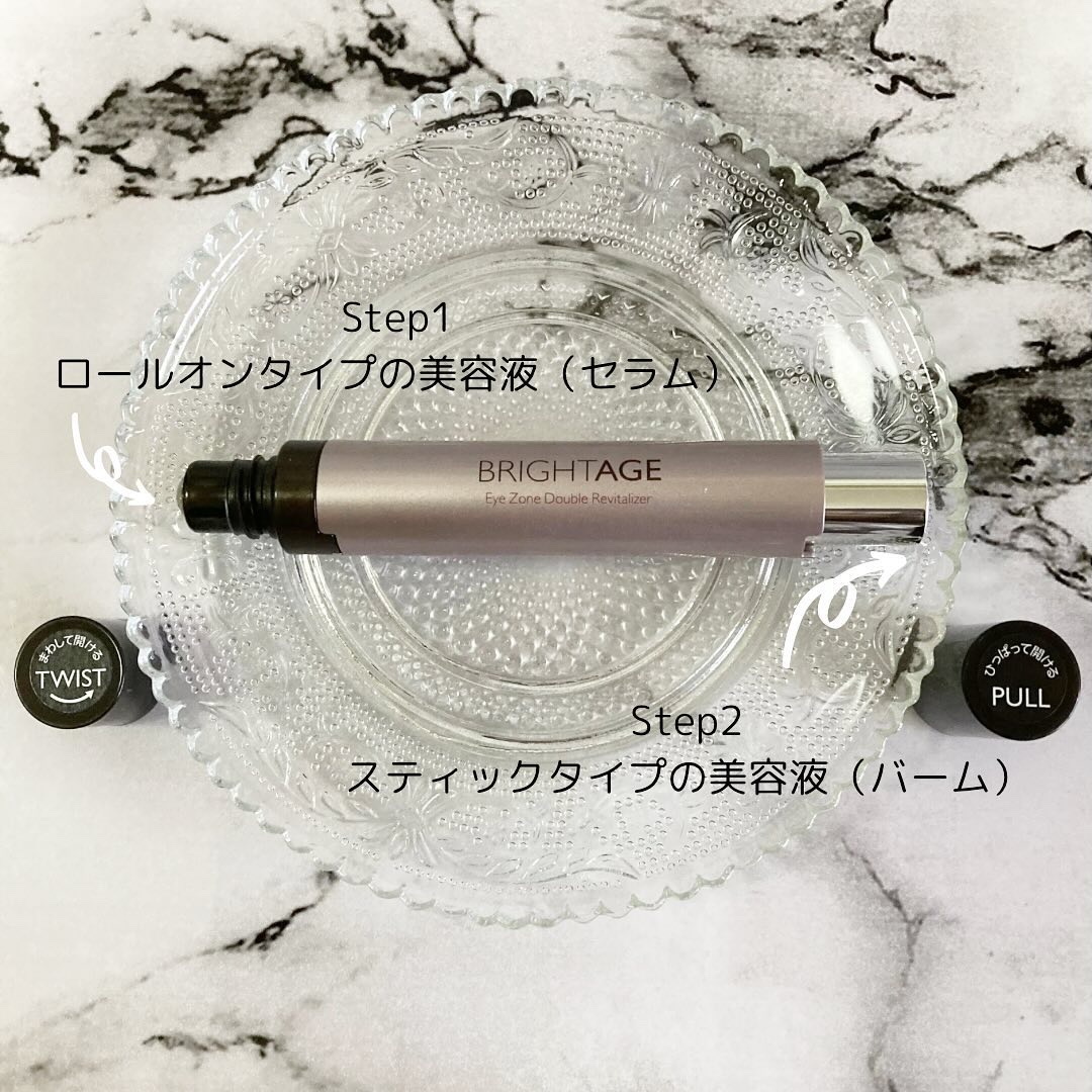 日本初の2in1スティックタイプ アイケアアイテム✨ セラムとバームの2段階浸透ケアを一つにしたこの製品は、目元の悩みに全方位からアプローチしてくれるそう! ころころするとロールがひんやりしているので、心地いいです! 次に使うのがバーム。一見固いかと思いきや体温でじゅわっと溶けるのでするすると塗布できます。 バームはメイクの上からでも使えるので、外出先でも乾燥が気になる時に使っています✨