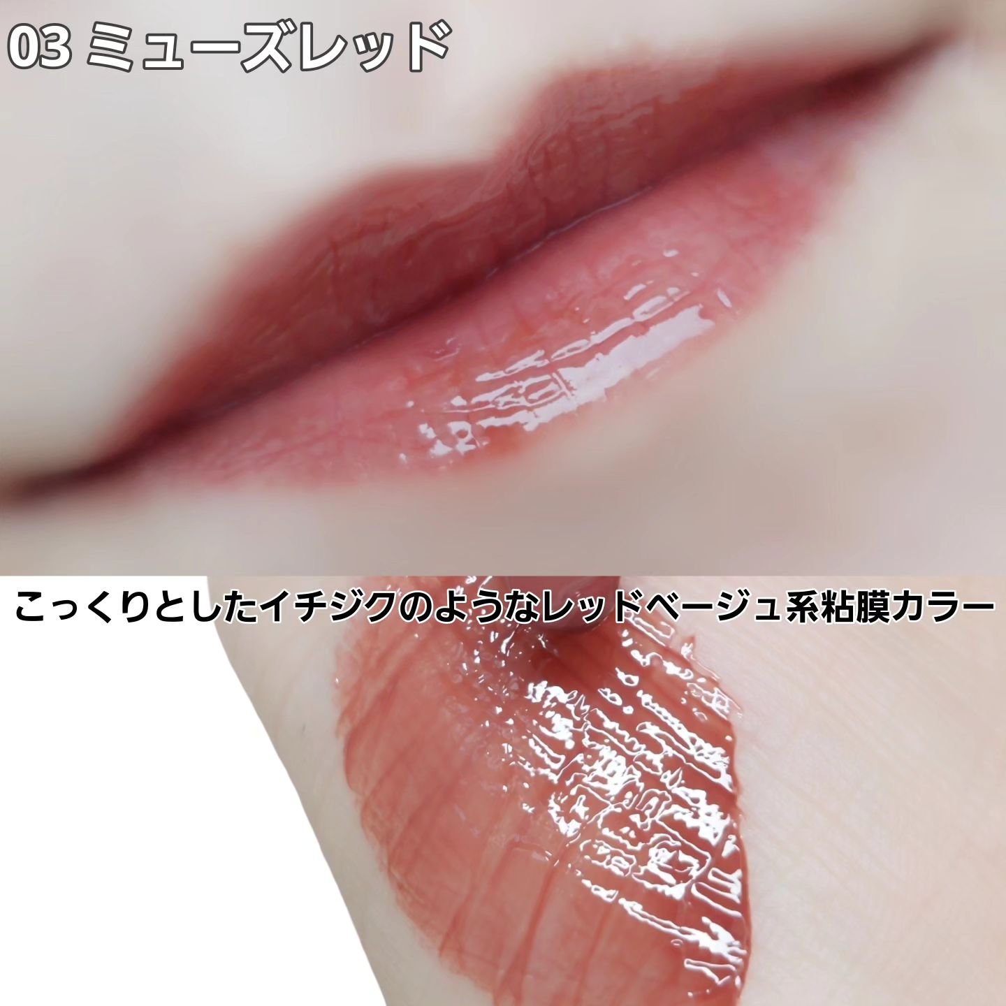 ニュートラルなベージュ系粘膜風カラー ▣01 ベイビーベージュ ▣02 ブロッサミングピンク ▣03 ミューズレッド 塗ったあとにツヤオイル膜が浮き上がって ぷるちゅるな唇に♡ ほんのりスーッとした付け心地です·͜· * 数量限定なので見かけた方はぜひ( ॑˘ ॑* )✧*。