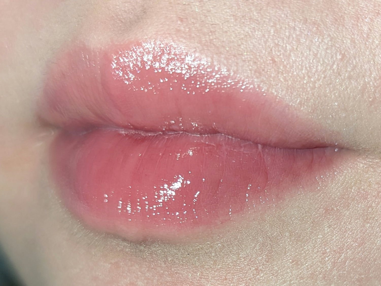 チャイティーピンクはくすみのあるヌードピンクで、ライトありだとほんのりくすみのあるヌードなピンクカラーで、素の唇をしっかり明るく可愛くしてくれます! みずみずしさを感じるツヤ感とグロスでしかだせないぽってり感が両立してるんです!!感動! 歯にめちゃくちゃ付きます!ここめちゃくちゃ辛い…