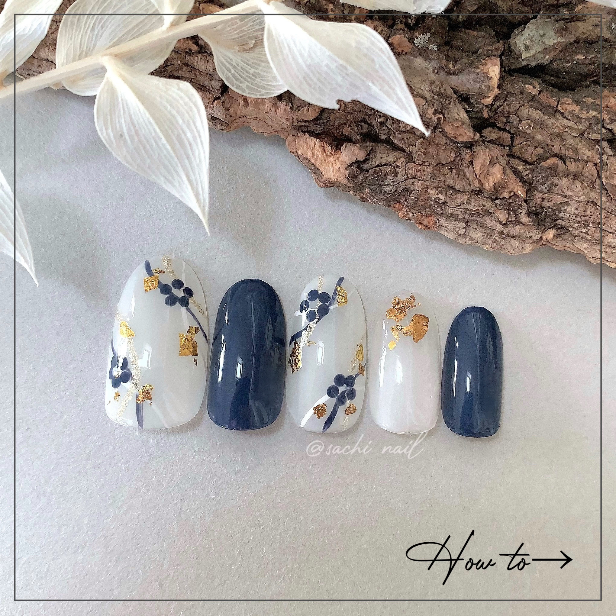 ワンカラーでも指ごとに色を変えるだけでオシャレに見えます💕 画像のようにゴールドラインとストーンを少し足すだけで華やかさがアップ🥰 何度かご紹介したことのあるスポンジで作るグラデーションです✨ スポンジを使うことで境目が綺麗に馴染んでくれます💕 アルミホイルの上でブラウンとトップコートを1:1くらいで混ぜたものを、トップコートのハケに取って3箇所に塗るだけ👌 事前に混ぜたものを塗ることで、爪の上でぼかすより簡単に出来ます💕 ベースカラーが乾く前に点置きしてぼかすことで綺麗にぼかせます✨ スピードが大事なので、使うポリッシュのキャップは全て開けておきましょう😊 天然石のラインはガタガタの方がより天然石っぽく見えるので、ラインを描くのが苦手な方でも大丈夫🙆♀️ 難しそうに見えて、やってみると意外と簡単に出来ます♡