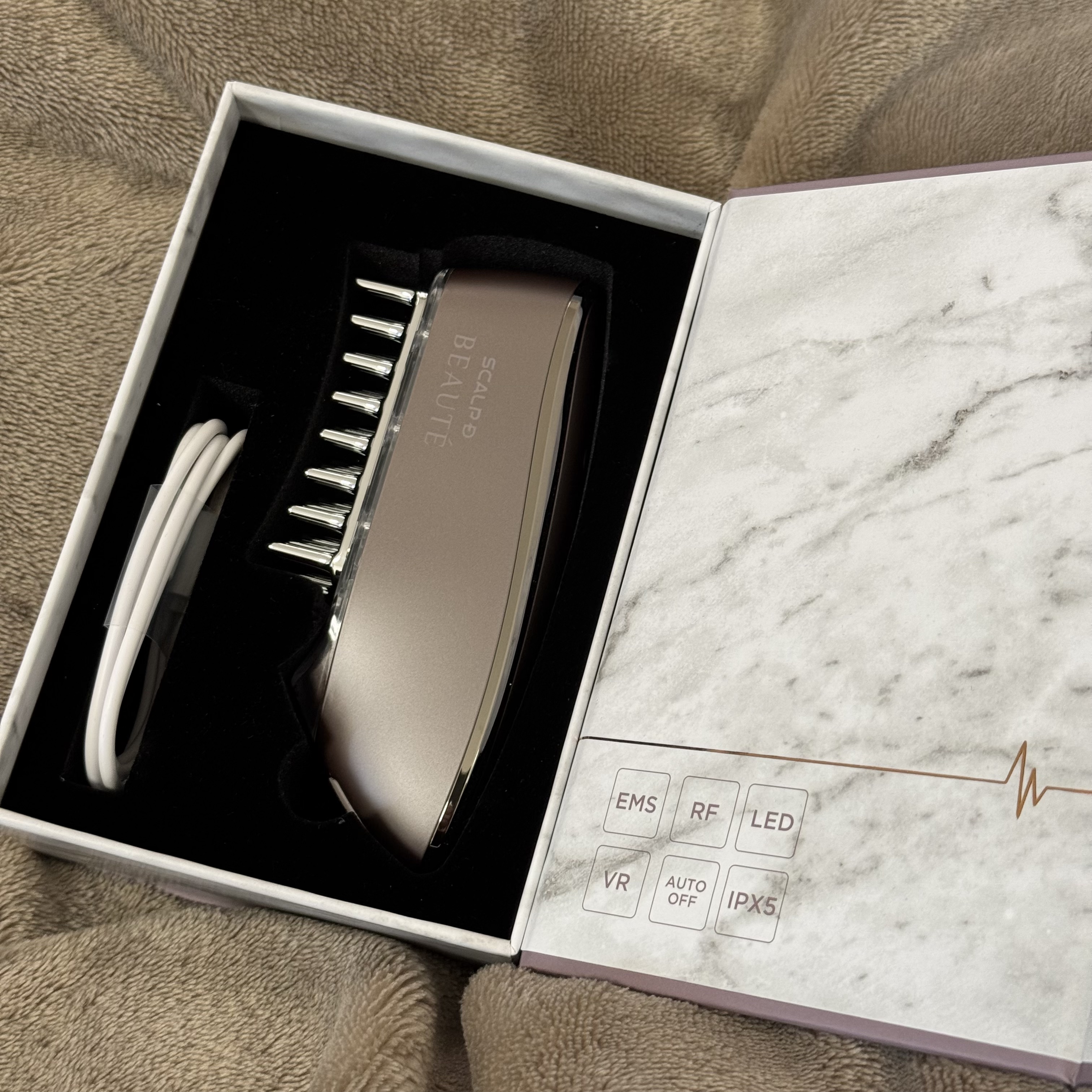 エイジングケアクリニック医師監修の スカルプ電気ブラシ! 高周波のEMSで頭皮にアプローチし、ラジオ派でリフトケア! 私的1番嬉しかったのは防水仕様で浴室でも使えること!