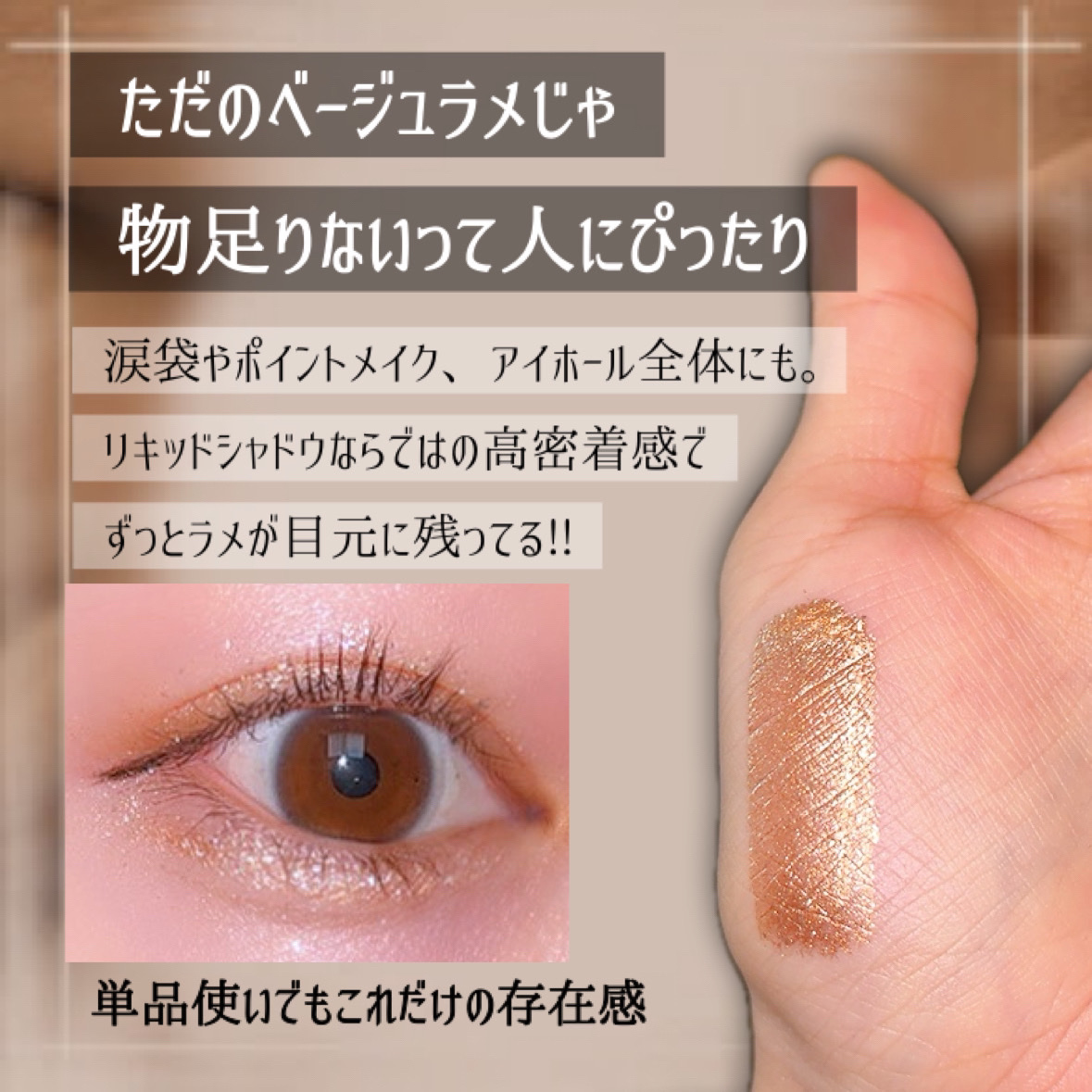 | リキッドアイシャドウランキング第3位 | ヨレにくい軽いテクスチャーとなったリキッドアイシャドウです🖤なんとも綺麗なラメ感、そして発色もいい♡ | 詳細を見る | |
