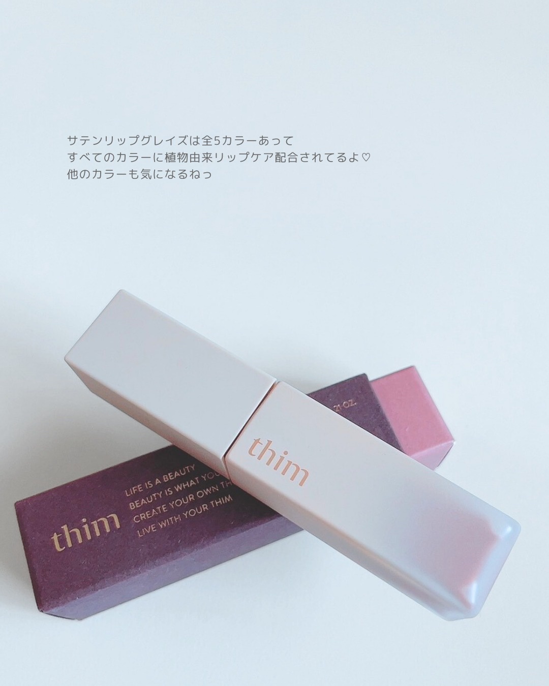 儚げ花びらカラーがしっとり馴染む…🌸thim サテンリップグレイズ𝟬𝟭𝗰𝗮𝗹𝗺𝗿𝗼𝘀𝗲外箱のお洒落さにびっくり✨スライドさせて開けるタイプなんです!小さなポイントだけど、そういうこだわり大好きです🩷手にのせてみると、結構しっかりベージュなんで...