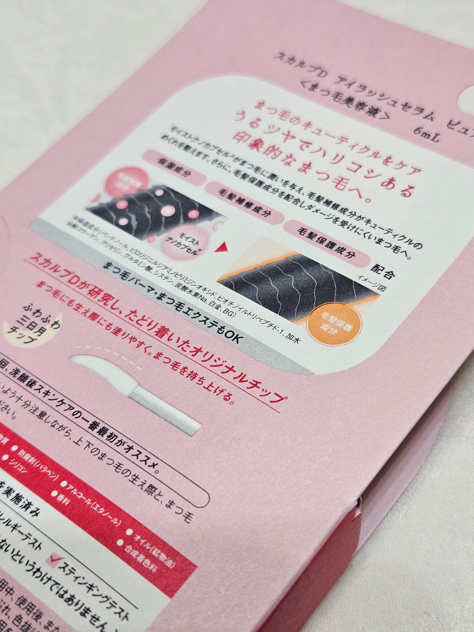 - ※2024年3月13日〜「スカルプD ボーテ ピュアフリーアイラッシュセラム」よりリニューアル発売。 まつ毛の乾燥ダメージをケアして、うるツヤの美しく整ったまつ毛へ。 まつ毛を美しく整えるリペアグロウ処方(保湿成分、毛髪補修成分、毛髪保護成分の独自成分を配合)で印象的なまつ毛へ導きます。 スカルプDが研究し、たどり着いたオリジナルチップ(ふわふわ三日月チップ)で、まつ毛にも生え際にも塗りやすく、まつ毛を持ち上げます。 フリー設計で以下8つの成分不使用! ●プロスタグランジン類似物質●防腐剤(パラベン)●アルコール(エタノール)●オイル(鉱物油)●界面活性剤●シリコン●香料●合成着色料 さらに眼刺激テスト、敏感肌対象パッチテスト、アレルギーテスト、スティンギングテストを実施済みでこだわり抜いた設計となっております。 ※すべての方にアレルギーや皮膚刺激、眼刺激が起こらないというわけではありません。