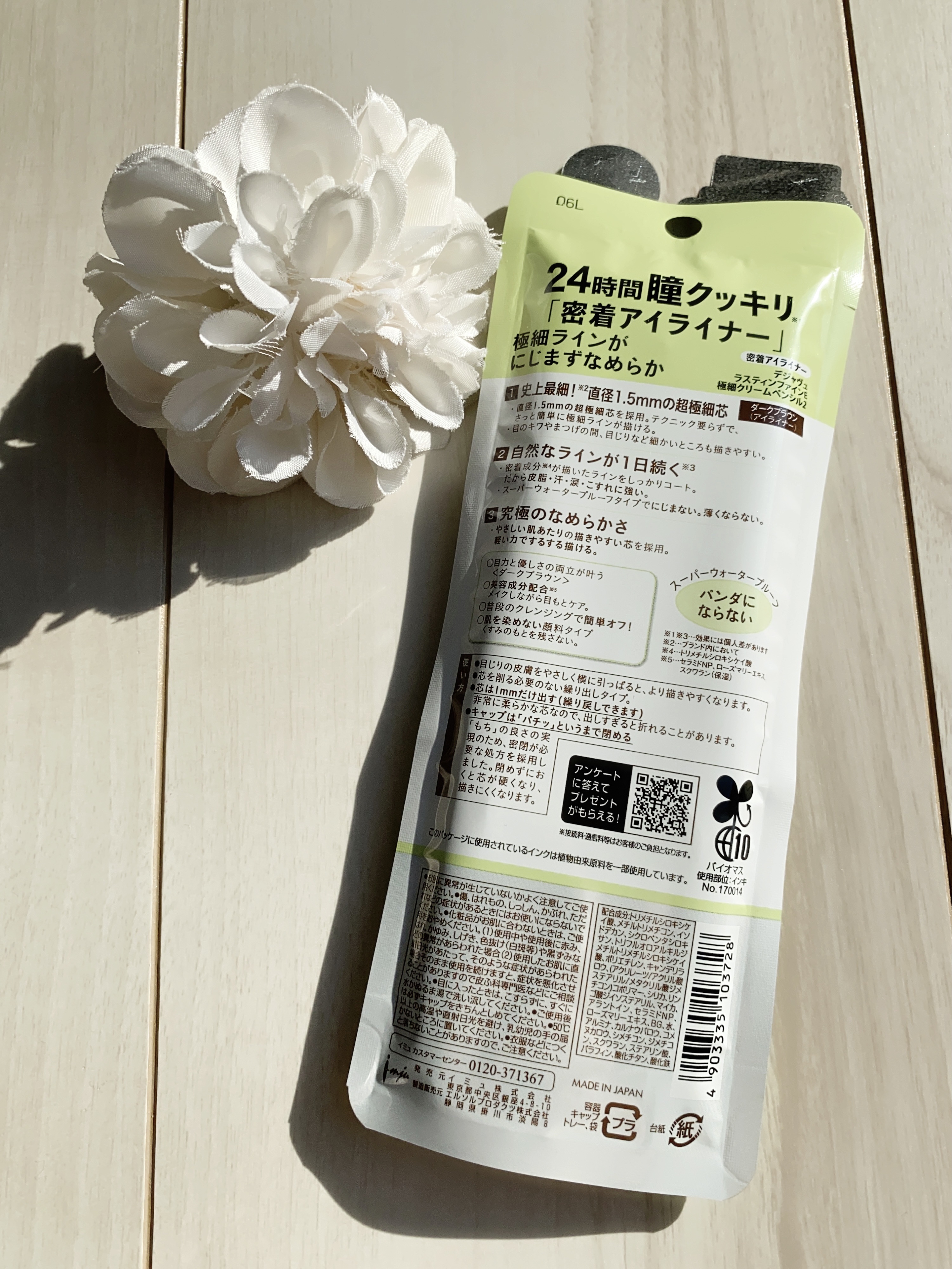 - ”なめらかなのに にじまない”クリームペンシル極細芯タイプ ・史上最細!*直径1.5㎜の超極細芯 ・自然なラインが長時間続く**スーパーウォータープルーフタイプ ・肌当たりが非常にやさしく、なめらかに描ける処方を採用 *ブランド内において **効果には個人差があります