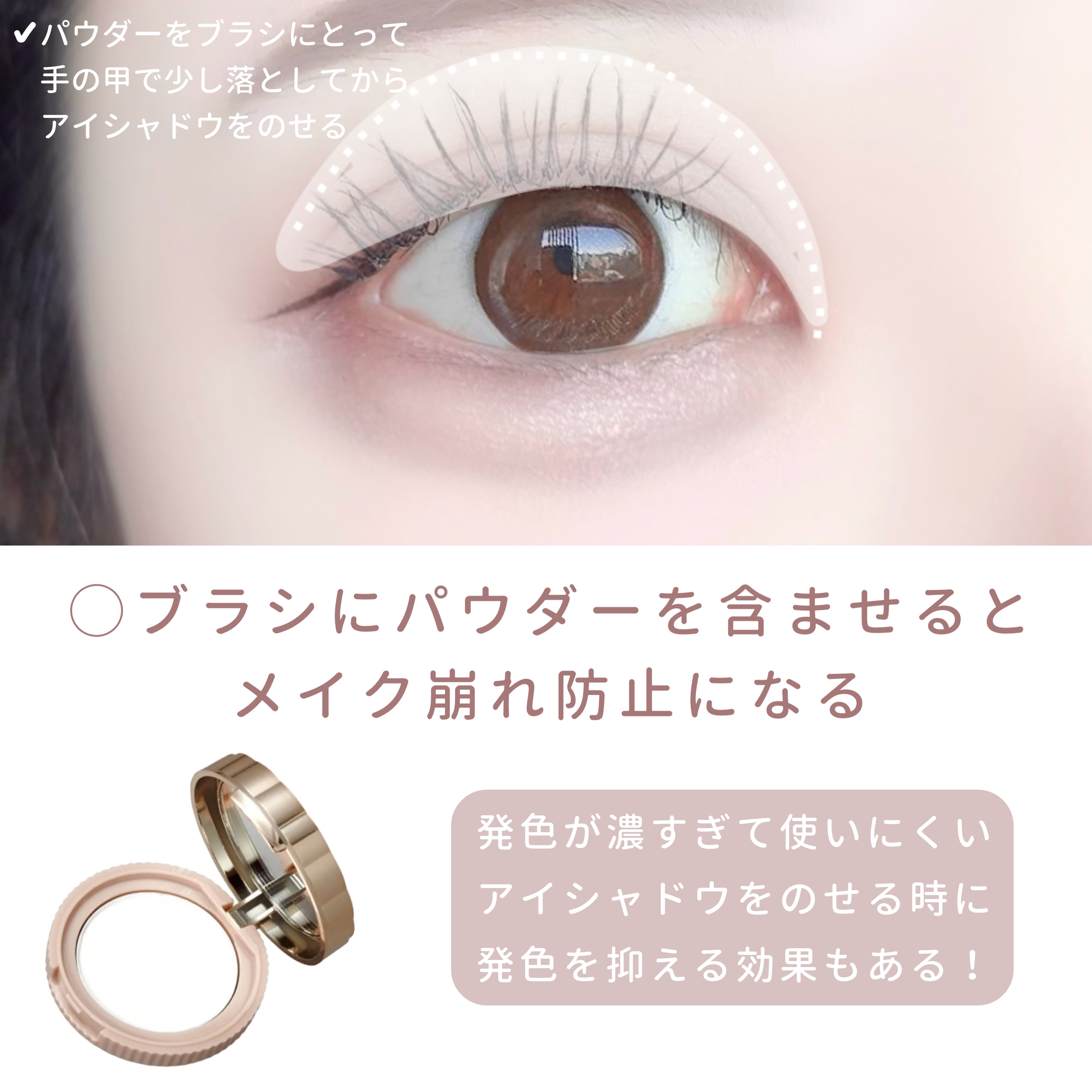 | パウダーの質感はしっとりめでまぶたにのばすとキラツヤが増す! | 詳細を見る |