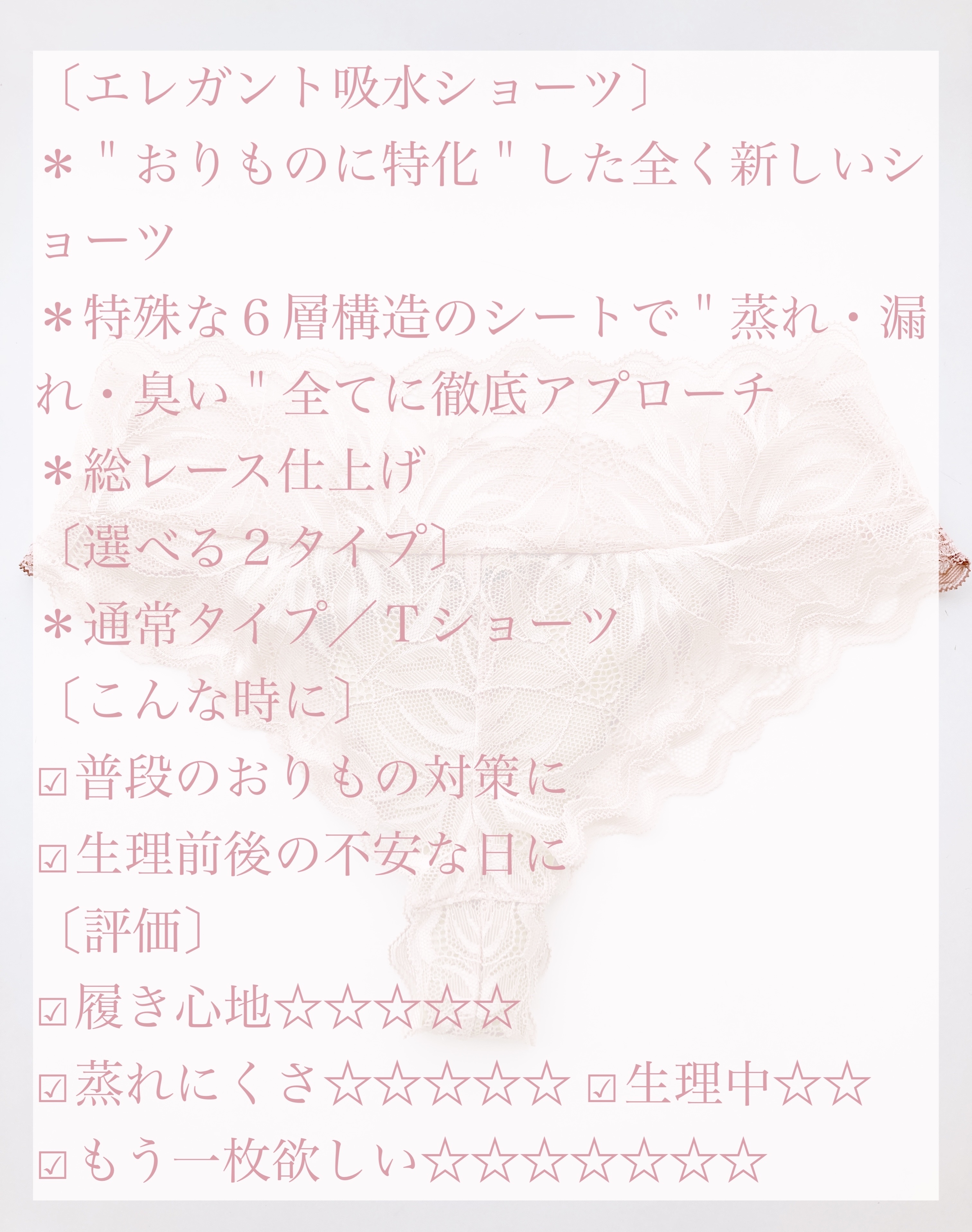 機能性インナーブランド「momoful(モモフル)」ご紹介します。今、ブランド内で売上No.1なのが総レース仕立てのおりもの特化型吸水ショーツ「おりもの吸水ショーツelegant」。吸水ショーツ市場で珍しい「おりもの特化型」。私も今回初...