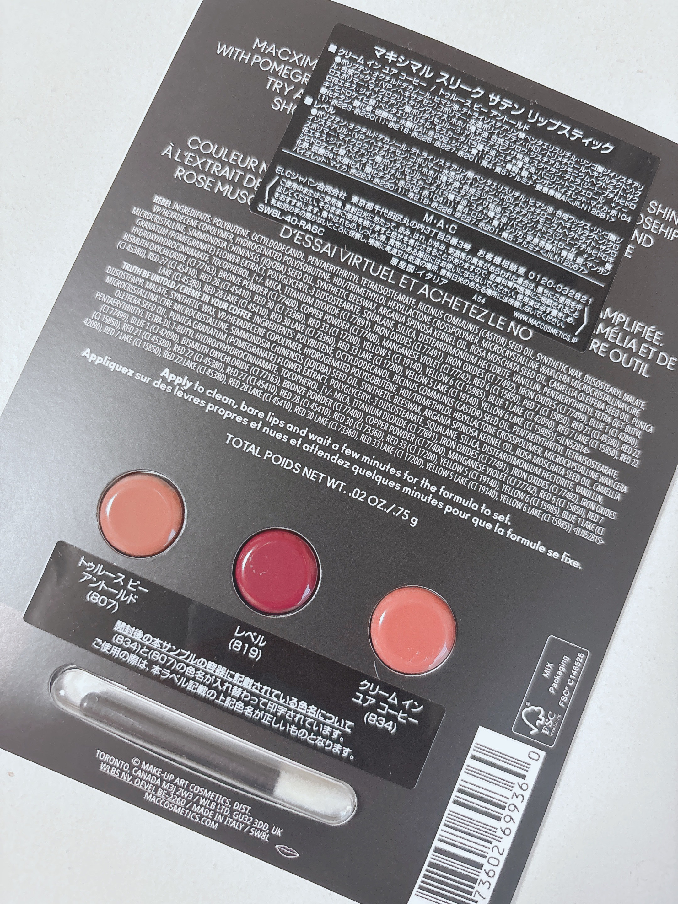 商品詳細情報M・A・C マキシマル スリーク サテン リップスティック