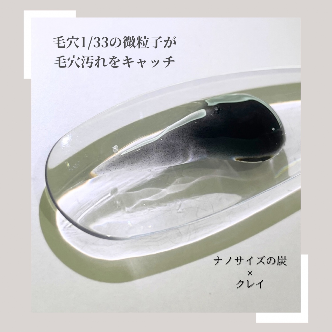 - クッション性のあるジェルがお肌の摩擦を軽減しながら、毛穴1/33の炭とクレイが毛穴の奥の汚れも吸着除去。細かい粒子でソフトピーリングもしてくれるので朝の洗顔としてもOK!夜のクレンジング兼洗顔としても使えるので、お肌に負担感のない使い心地で極上のつるもち肌に導きます。