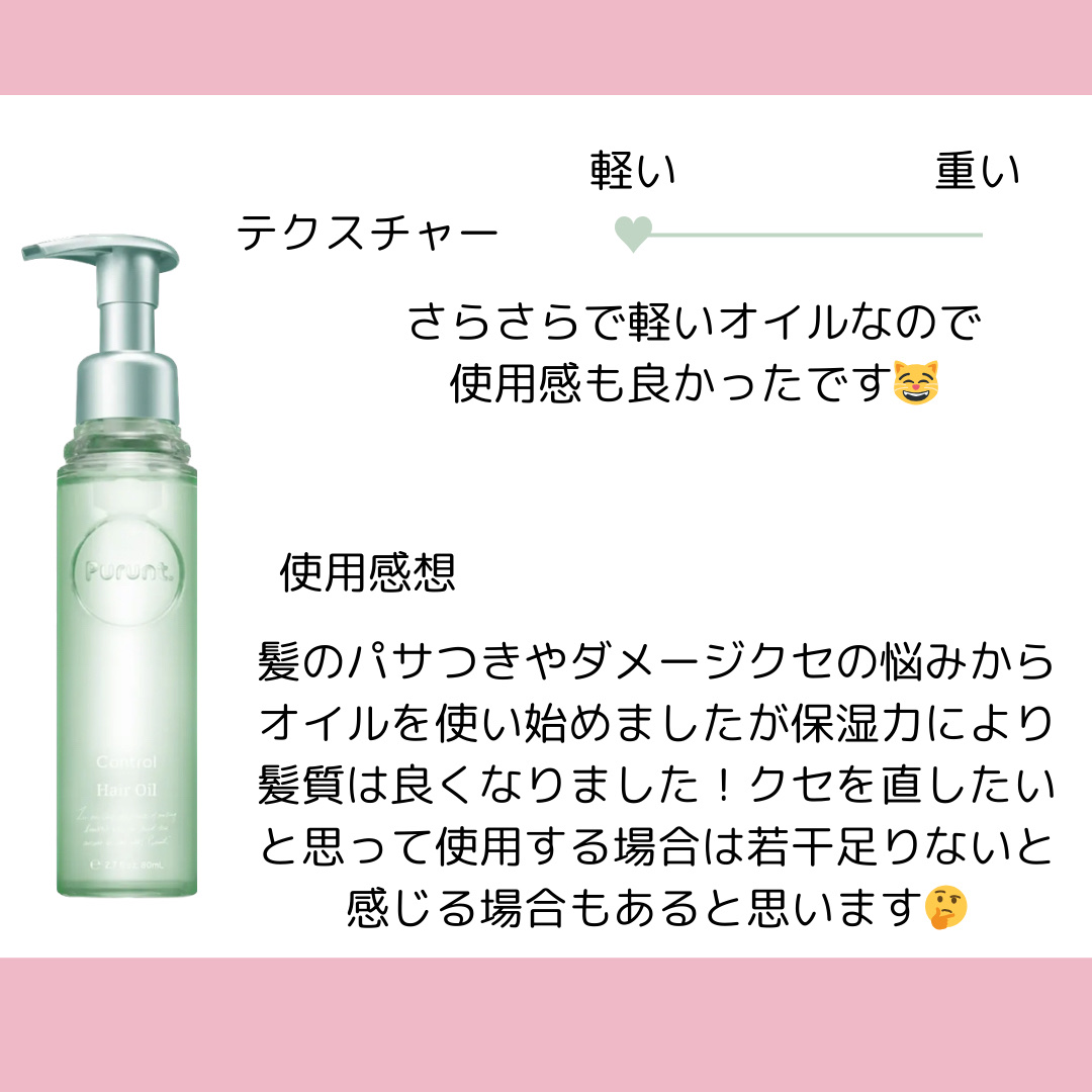 Purunt.コントロール美容液ヘアオイル96%以上の保湿・保護でうねりクセダメージをコントロール🛒¥1,540(税込)80mlホワイトサボン&ムスクの香りいいね保存コメントフォローお願いしますෆ✊🏻#purunt#うねり髪#美髪#ヒアル...