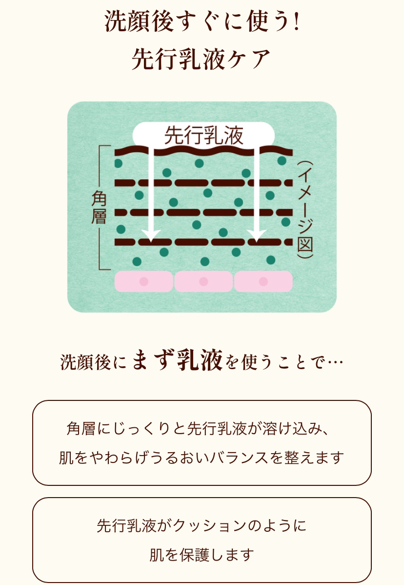 洗顔後すぐに使用することで、肌をうるおいでほぐしやわらげます。8種の天然型セラミド*(うるおい成分)配合の先行乳液が角層まで浸透。 使用感はベタベタせずに、翌朝はお肌が柔らかくなり、すべっとします😊 風邪をひいて鼻周りの皮が剥けまくってる時に使ったらすごくよかった💛 最初にこれを仕込んでおくと、ワセリンが入ってるだけあってお肌をガードしてくれる感覚です♡