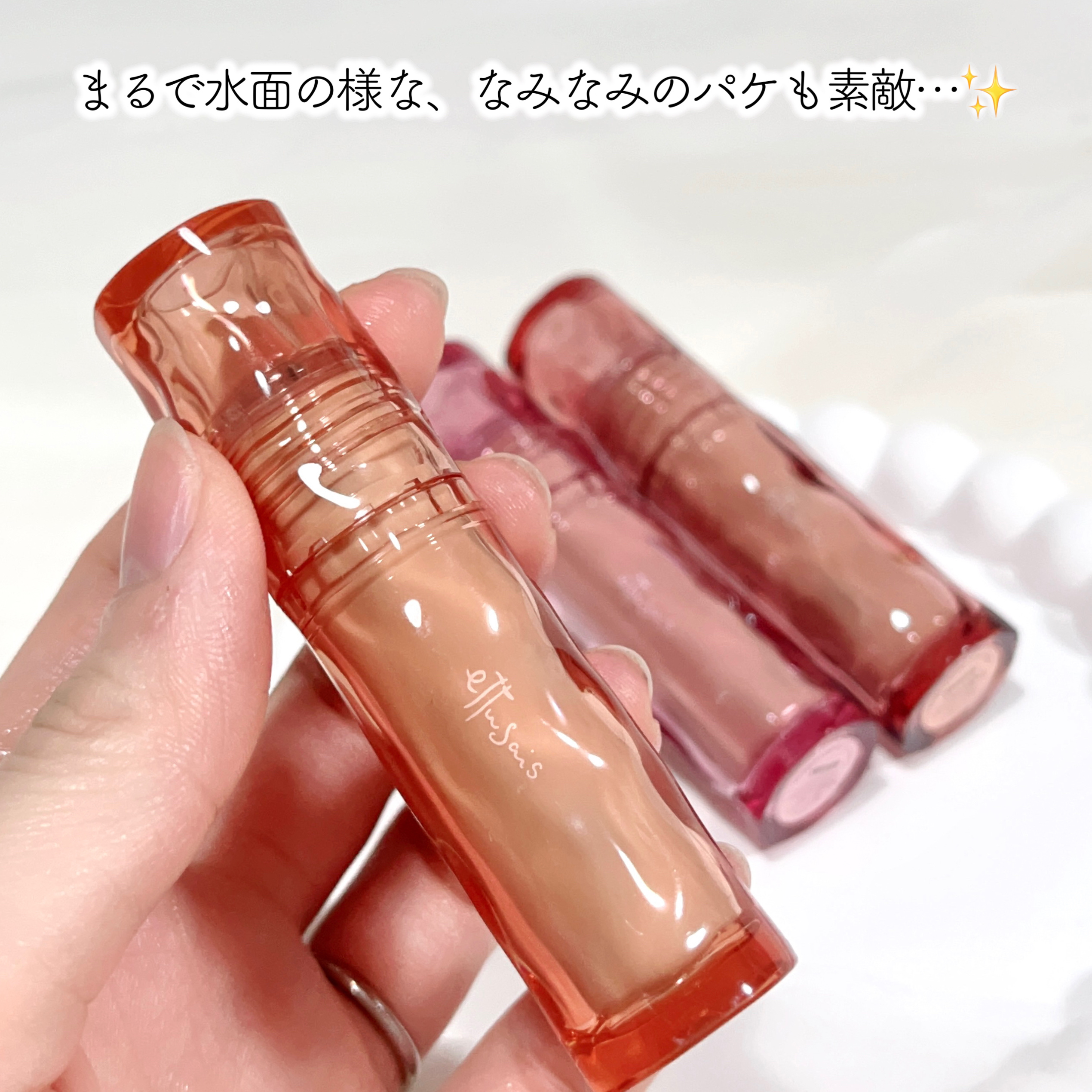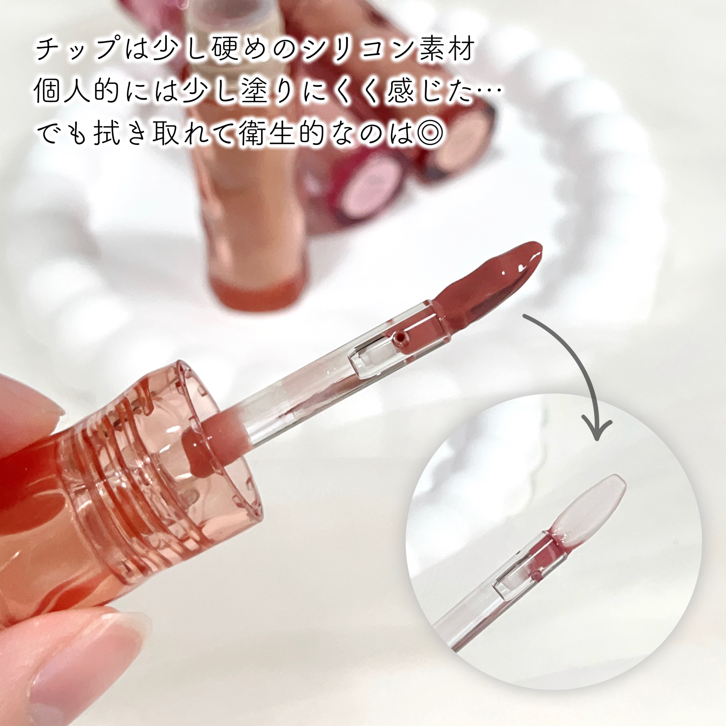リップフィラー級のぷっくり感とちゅるんとしたみずみずしいツヤ感✨ 塗った直後より少し経った時の方がツヤオイル膜が浮き上がってじゅわっとツヤツヤにぷっくり唇に💋✨ ニュートラルカラーだからイエベ・ブルベ問わずに使えそうだよ👍