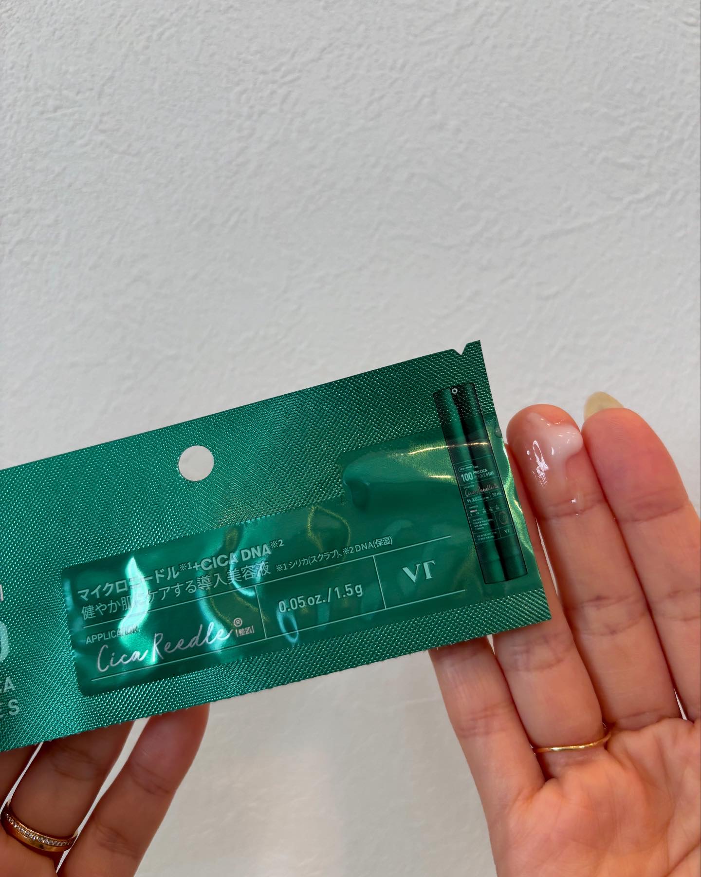 使用後の肌を触ってみるとぷるっぷる! 【VT ホームエステハイドロゲルマスク】 美容成分が角層まで浸透し徐々に透明に変化するぷるぷるゲルマスク 1回使い切りで持ち運びしやすく、旅行や出張にもピッタリ🌟
