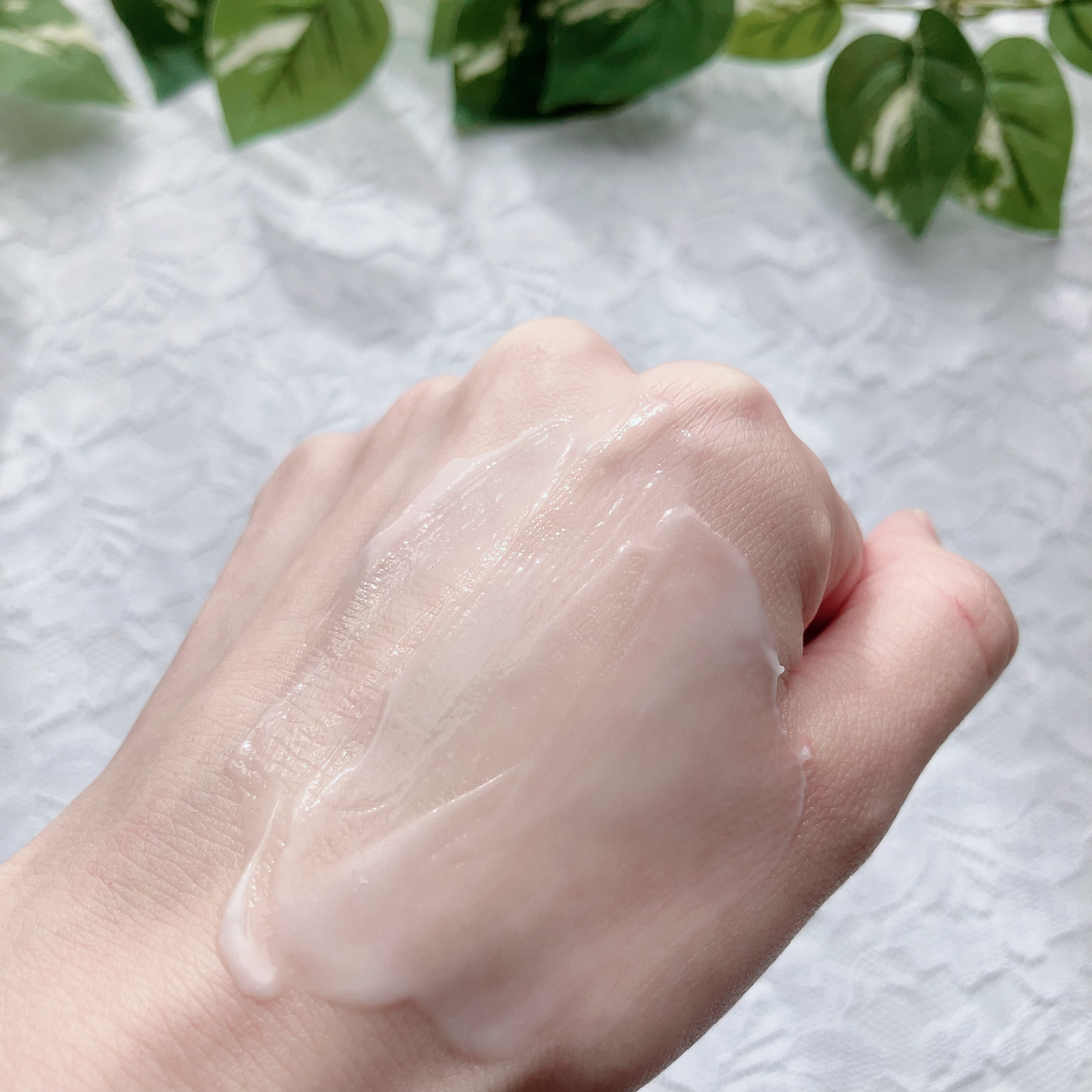 さらさらで伸びが良いテクスチャー。 肌への密着感もあって、ピンクベージュの色みが毛穴のカバーとほんんのりトーンアップも。 クリームのようなテクスチャー。 肌にのせすぎると白っぽくなるので、少しずつ伸ばすのが◎ なめらかテクスチャー。 細かいパールが入ってますが、ギラギラしたりもなく自然な感じ。