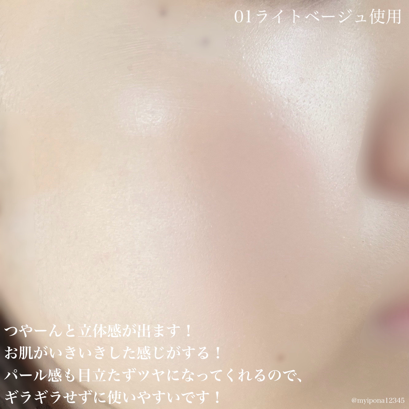 - 透明感のあるもっちりツヤ肌♪ 長時間うるおいが続く立体ツヤ感ベース 高輝度パール配合で、立体感とうるおいのあるツヤ肌仕上がり。 肌に透明感を与え、自然にトーンアップします。 水分を多く含んだような、わざとらしさのないツヤ感を演出✨ 美容液のようなみずみずしいテクスチャーで伸びが良く、 簡単にムラなく塗ることができます。 ツヤを出しつつもベタつきにくい仕上がり♪ つけている間スキンケア感覚で、長時間乾燥しにくい! 17種類の美容保湿成分配合。 使いやすいポンプタイプ♪