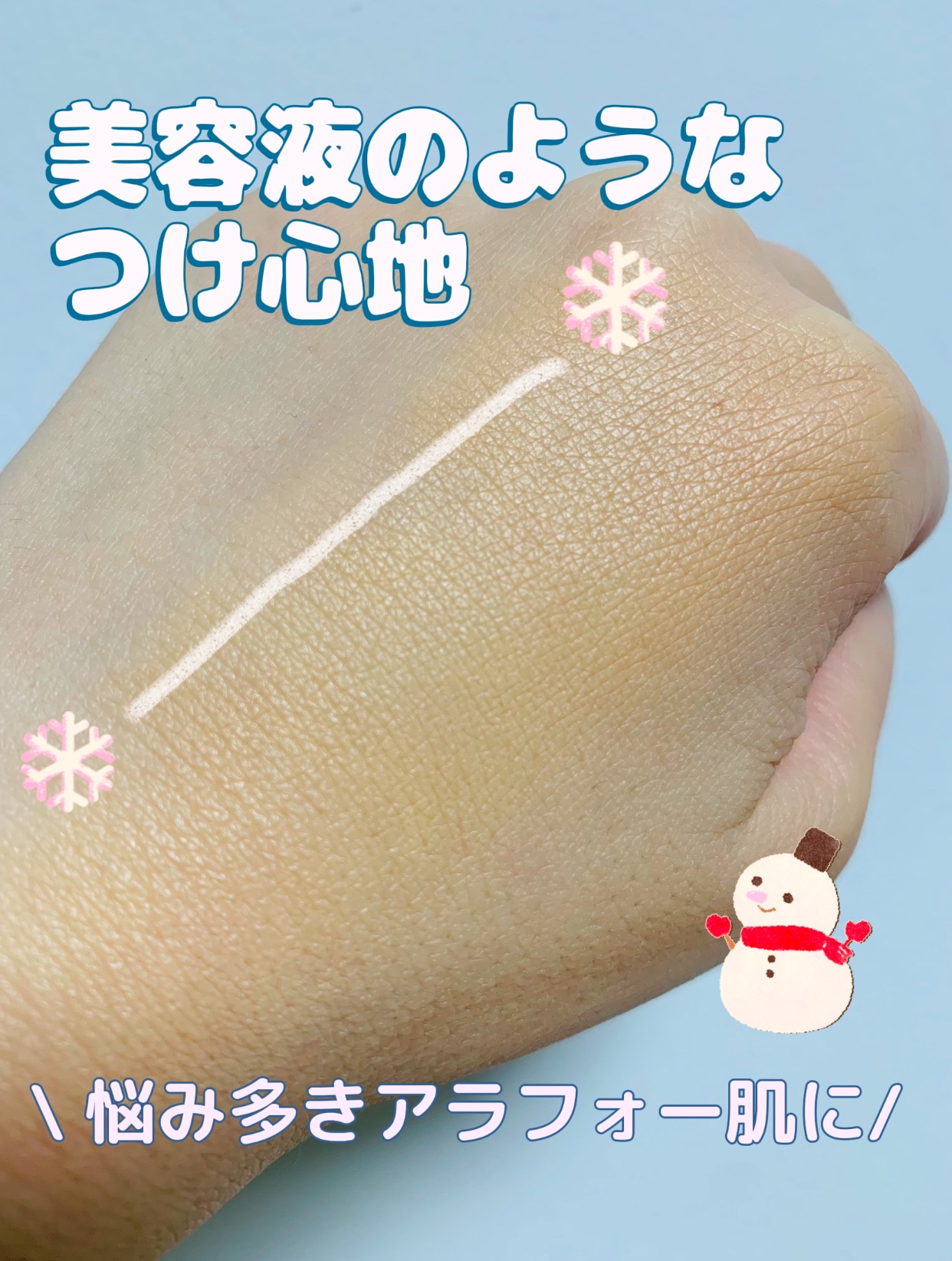 Tゾーンのテカリが気になる混合肌と くすみや色むらが悩みの私にはピッタリ🥰 しかも乳液仕様だから 化粧水の後、すぐ使えるの❣️ 美容成分がたっぷり入っているみたいで 軽いつけ心地なのに しっとりとするような使用感なのです🫧 単品利用なら石鹸で落ちるから ファンデを使わない休日にも便利だね😆 ちなみに蓋がね、ハートなの💛 めちゃくちゃ可愛い╰(*´︶`*)╯♡