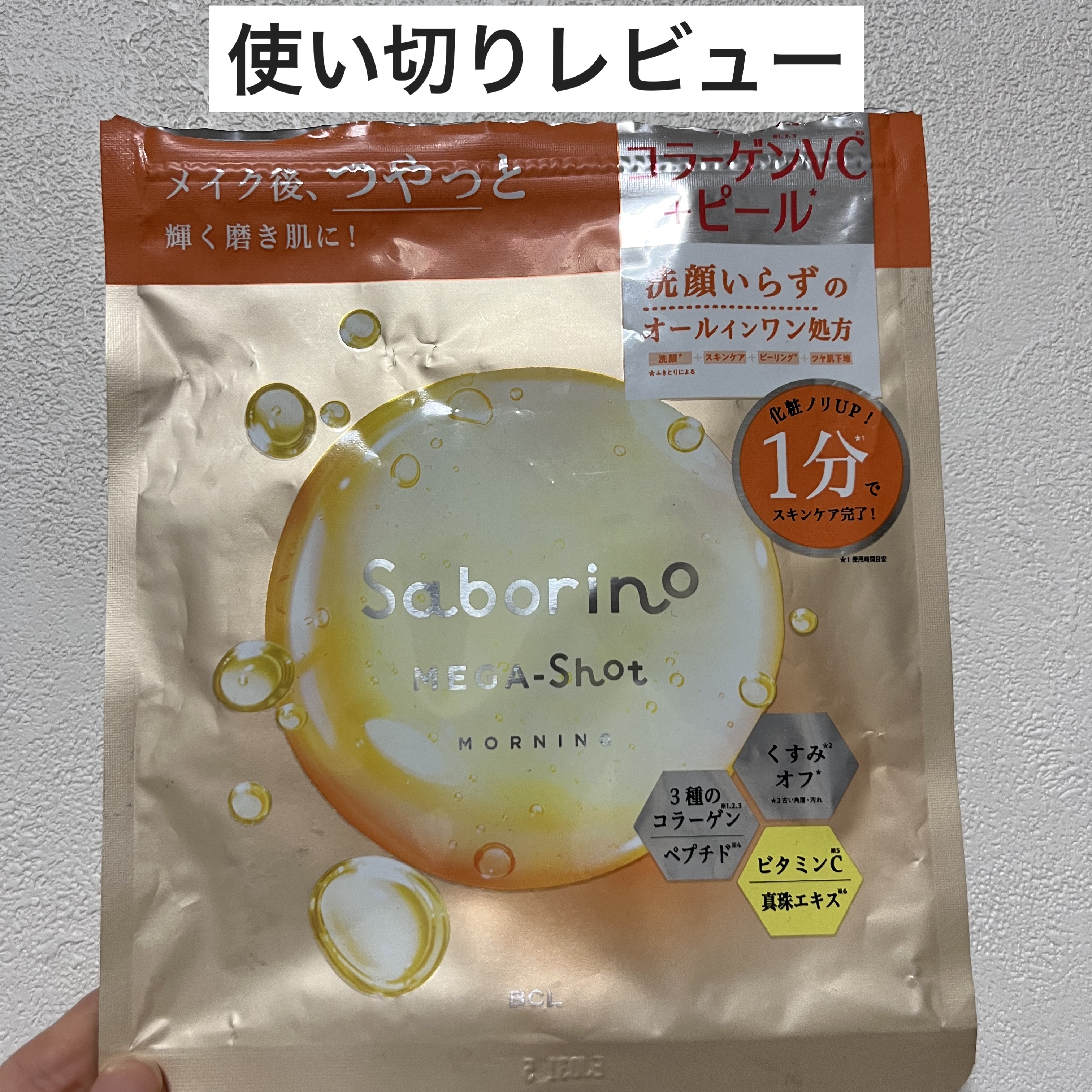 『サボリーノメガショット朝用 ツヤピールマスクCC』フェイスマスクです 朝用で使用時間の目安は1分 忙しい朝には嬉しい時短 洗顔いらずのオールイワン処方↓洗顔※スキンケアピーリング※ツヤ肌下地(※ふきとりによる) マスクもぴったり顔にフィッ...