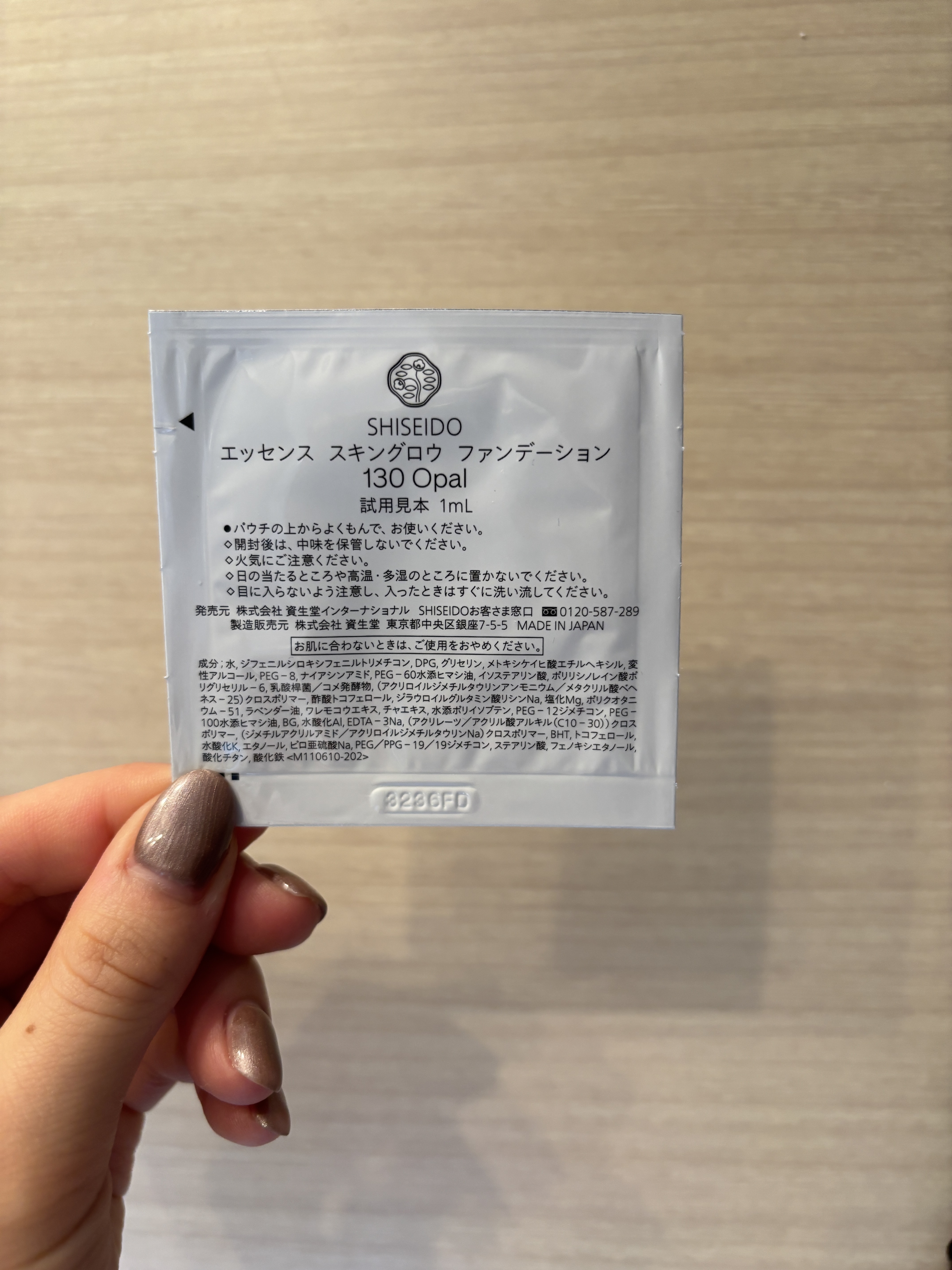 - <130 Opal> 水、ジフェニルシロキシフェニルトリメチコン、DPG、グリセリン、メトキシケイヒ酸エチルヘキシル、変性アルコール、PEG-8、ナイアシンアミド、PEG-60水添ヒマシ油、イソステアリン酸、ポリリシノレイン酸ポリグリセリル-6、乳酸桿菌/コメ発酵物、(アクリロイルジメチルタウリンアンモニウム/メタクリル酸ベヘネス-25)クロスポリマー、酢酸トコフェロール、ジラウロイルグルタミン酸リシンNa、塩化Mg、ポリクオタニウム-51、ラベンダー油、ワレモコウエキス、チャエキス、水添ポリイソブテン、PEG-12ジメチコン、PEG-100水添ヒマシ油、BG、水酸化Al、EDTA-3Na、(アクリレーツ/アクリル酸アルキル(C10-30))クロスポリマー、(ジメチルアクリルアミド/アクリロイルジメチルタウリンNa)クロスポリマー、BHT、トコフェロール、水酸化K、エタノール、ピロ亜硫酸Na、PEG/PPG-19/19ジメチコン、ステアリン酸、フェノキシエタノール、酸化チタン、酸化鉄 <140 Porcelain> 水、ジフェニルシロキシフェニルトリメチコン、DPG、グリセリン、メトキシケイヒ酸エチルヘキシル、変性アルコール、PEG-8、ナイアシンアミド、PEG-60水添ヒマシ油、イソステアリン酸、ポリリシノレイン酸ポリグリセリル-6、乳酸桿菌/コメ発酵物、(アクリロイルジメチルタウリンアンモニウム/メタクリル酸ベヘネス-25)クロスポリマー、酢酸トコフェロール、ジラウロイルグルタミン酸リシンNa、塩化Mg、ポリクオタニウム-51、ラベンダー油、ワレモコウエキス、チャエキス、水添ポリイソブテン、PEG-12ジメチコン、PEG-100水添ヒマシ油、BG、水酸化Al、EDTA-3Na、(アクリレーツ/アクリル酸アルキル(C10-30))クロスポリマー、(ジメチルアクリルアミド/アクリロイルジメチルタウリンNa)クロスポリマー、BHT、トコフェロール、水酸化K、エタノール、ピロ亜硫酸Na、PEG/PPG-19/19ジメチコン、ステアリン酸、フェノキシエタノール、酸化チタン、酸化鉄 <160 Shell> 水、ジフェニルシロキシフェニルトリメチコン、DPG、グリセリン、メトキシケイヒ酸エチルヘキシル、変性アルコール、PEG-8、ナイアシンアミド、PEG-60水添ヒマシ油、イソステアリン酸、ポリリシノレイン酸ポリグリセリル-6、乳酸桿菌/コメ発酵物、(アクリロイルジメチルタウリンアンモニウム/メタクリル酸ベヘネス-25)クロスポリマー、酢酸トコフェロール、ジラウロイルグルタミン酸リシンNa、塩化Mg、ポリクオタニウム-51、ラベンダー油、ワレモコウエキス、チャエキス、水添ポリイソブテン、PEG-12ジメチコン、PEG-100水添ヒマシ油、BG、水酸化Al、EDTA-3Na、(アクリレーツ/アクリル酸アルキル(C10-30))クロスポリマー、(ジメチルアクリルアミド/アクリロイルジメチルタウリンNa)クロスポリマー、BHT、トコフェロール、水酸化K、エタノール、ピロ亜硫酸Na、PEG/PPG-19/19ジメチコン、ステアリン酸、フェノキシエタノール、酸化チタン、酸化鉄 <220 Linen> 水、ジフェニルシロキシフェニルトリメチコン、DPG、グリセリン、メトキシケイヒ酸エチルヘキシル、変性アルコール、PEG-8、ナイアシンアミド、PEG-60水添ヒマシ油、イソステアリン酸、ポリリシノレイン酸ポリグリセリル-6、乳酸桿菌/コメ発酵物、(アクリロイルジメチルタウリンアンモニウム/メタクリル酸ベヘネス-25)クロスポリマー、酢酸トコフェロール、ジラウロイルグルタミン酸リシンNa、塩化Mg、ポリクオタニウム-51、ラベンダー油、ワレモコウエキス、チャエキス、水添ポリイソブテン、PEG-12ジメチコン、PEG-100水添ヒマシ油、BG、水酸化Al、EDTA-3Na、(アクリレーツ/アクリル酸アルキル(C10-30))クロスポリマー、(ジメチルアクリルアミド/アクリロイルジメチルタウリンNa)クロスポリマー、BHT、トコフェロール、水酸化K、エタノール、ピロ亜硫酸Na、PEG/PPG-19/19ジメチコン、ステアリン酸、フェノキシエタノール、酸化チタン、酸化鉄 <230 Alder> 水、ジフェニルシロキシフェニルトリメチコン、DPG、グリセリン、メトキシケイヒ酸エチルヘキシル、変性アルコール、PEG-8、ナイアシンアミド、PEG-60水添ヒマシ油、イソステアリン酸、ポリリシノレイン酸ポリグリセリル-6、乳酸桿菌/コメ発酵物、(アクリロイルジメチルタウリンアンモニウム/メタクリル酸ベヘネス-25)クロスポリマー、酢酸トコフェロール、ジラウロイルグルタミン酸リシンNa、塩化Mg、ポリクオタニウム-51、ラベンダー油、ワレモコウエキス、チャエキス、水添ポリイソブテン、PEG-12ジメチコン、PEG-100水添ヒマシ油、BG、水酸化Al、EDTA-3Na、(アクリレーツ/アクリル酸アルキル(C10-30))クロスポリマー、(ジメチルアクリルアミド/アクリロイルジメチルタウリンNa)クロスポリマー、BHT、トコフェロール、水酸化K、エタノール、ピロ亜硫酸Na、PEG/PPG-19/19ジメチコン、ステアリン酸、フェノキシエタノール、酸化チタン、酸化鉄 <240 Quartz> 水、ジフェニルシロキシフェニルトリメチコン、DPG、グリセリン、メトキシケイヒ酸エチルヘキシル、変性アルコール、PEG-8、ナイアシンアミド、PEG-60水添ヒマシ油、イソステアリン酸、ポリリ
