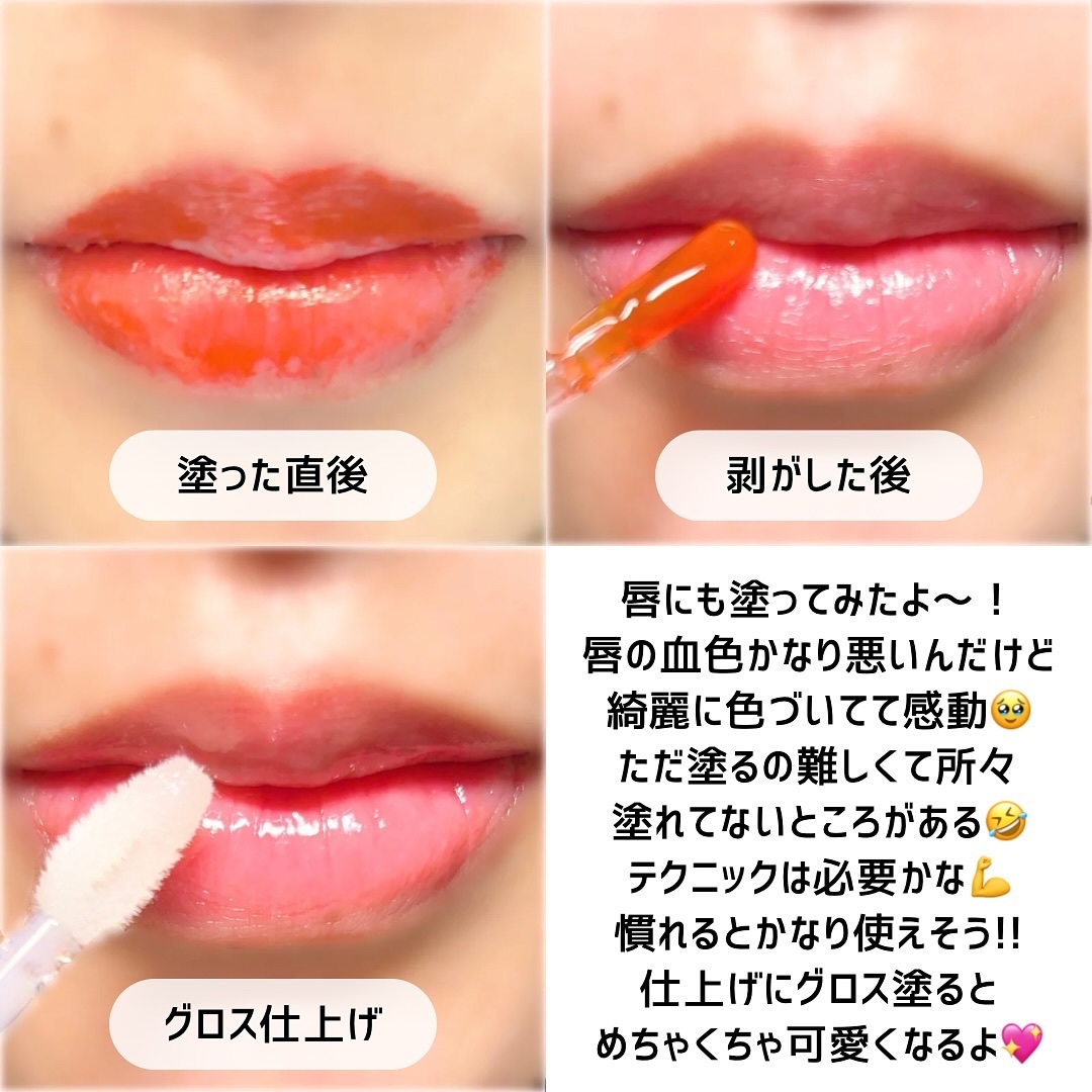 \色持ちが本気でえぐい🥺💋/塗ってはがすタイプのリップティント💄ファンデを塗り終わるタイミングで仕込むとメイクが完成する頃にはしっかり乾いてちょうどいい感じ!仕上げにオイルを重ねるとぷるんぷるんのツヤ唇に💓最近はもう【Oiadのリップティーク...