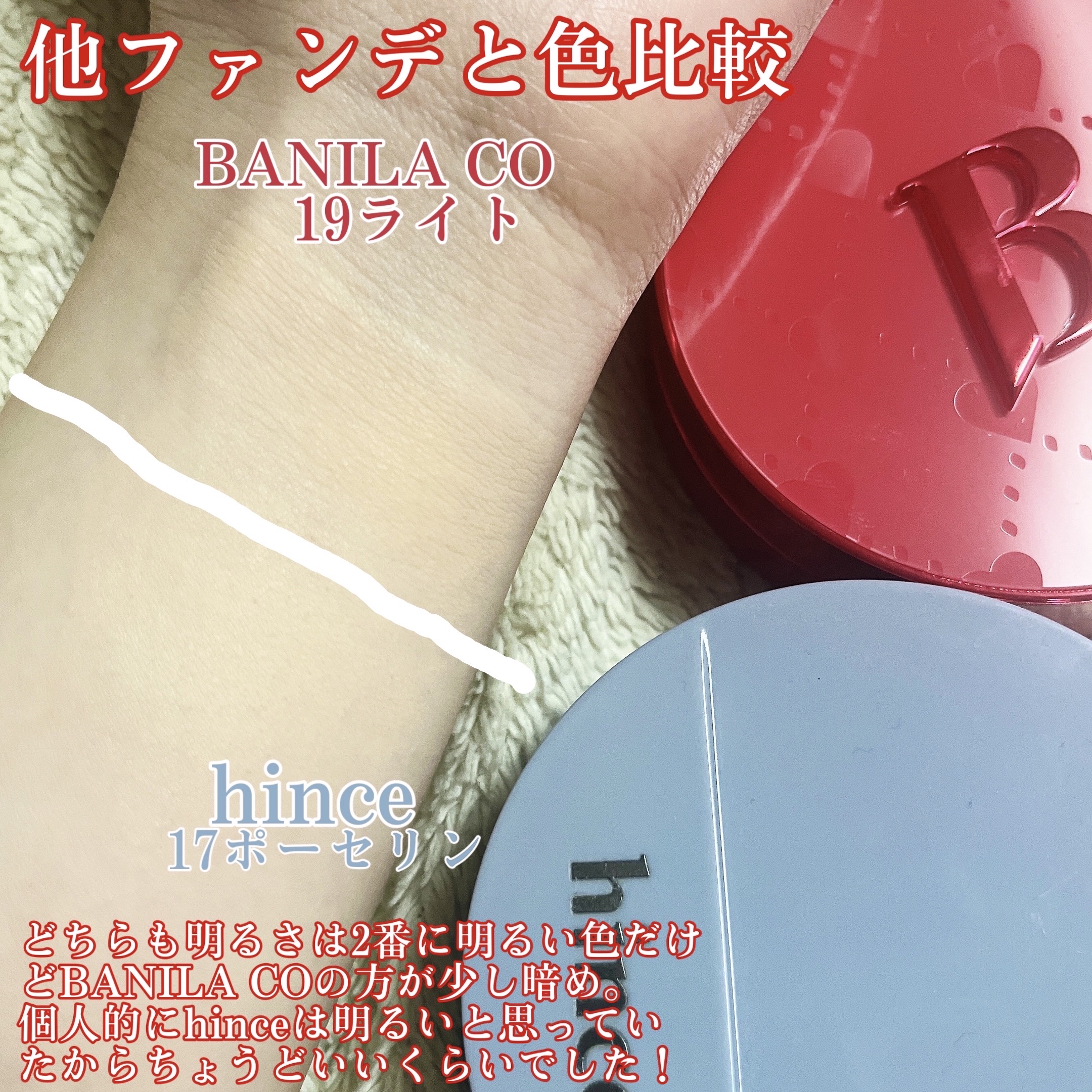 バニラコのクッションファンデ2種、同じ色で購入したのですがけっこう違い出た!!👀・BANILACOカバーリシャスアルティメットホワイトクッション・BANILACOカバーリシャスアルティメットホワイトクッションモイスチャー※色は両方とも21ロゼ...