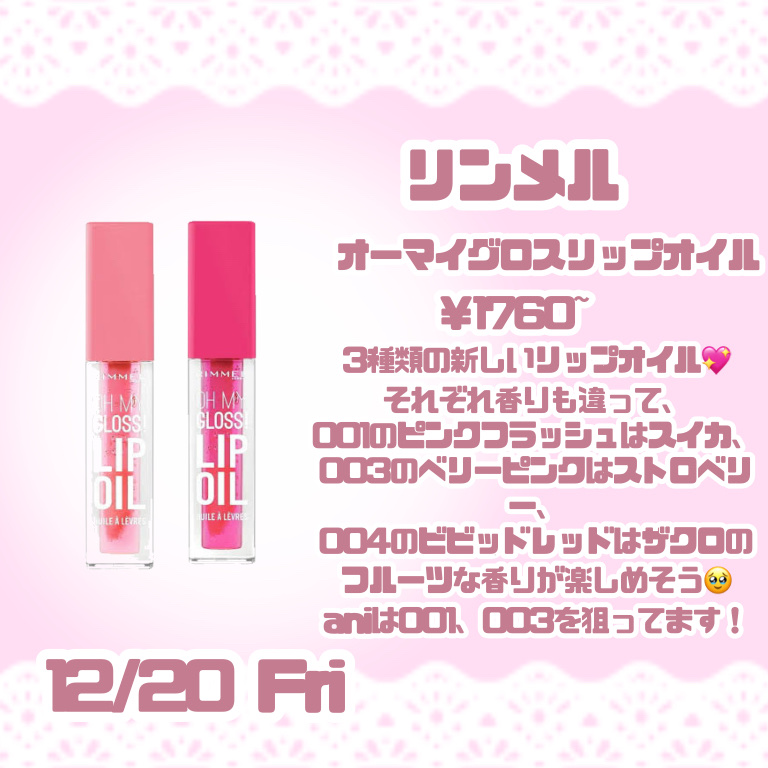リンメル ロンドン オーマイグロス リップオイル | 1,760円 |
