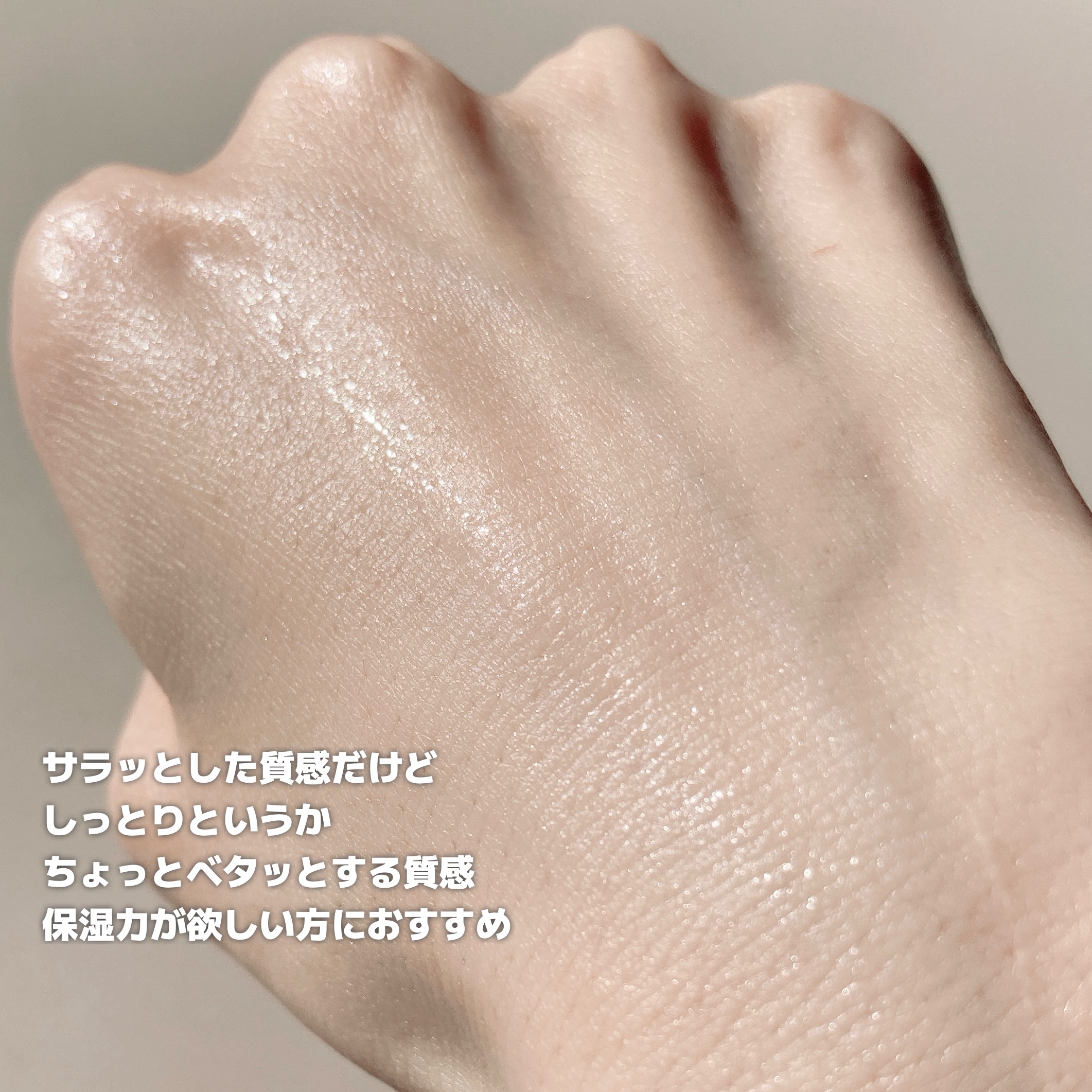 Wのほうが白っぽい黄色なのでトーンアップという点ではこっちの方が強い パールで艶っぽくみせてるのがW Wの方はマット目な感じで比較的サラサラとした肌表面の仕上がり Rはオイルっぽい感じがするので保湿を求めてるならこっちかも どちらも少量で伸びやすいです 特にRはバターが溶けるみたいな感じです