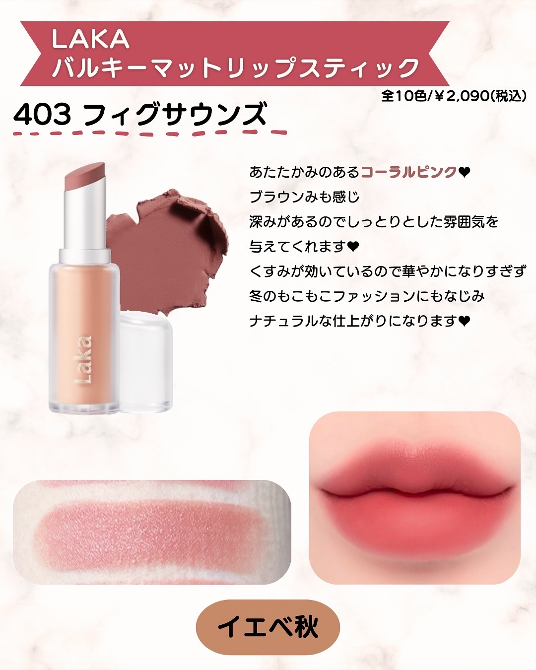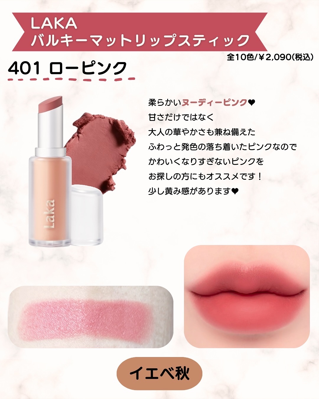 昨年の4月に発売されてから約1年が経とうとしています💛 まだその人気は衰えず常に在庫が無いような状態が続いているRMKのリップ💄 発色の良さや質感もデパコスならではの満足感❣️ ぜひ保存して参考にしてみてください😊✨️ 肌の色を美しく引き立てるやわらかな黄みを帯びたヌードベージュ❤︎ 🤎イエべ秋にオススメ❤︎