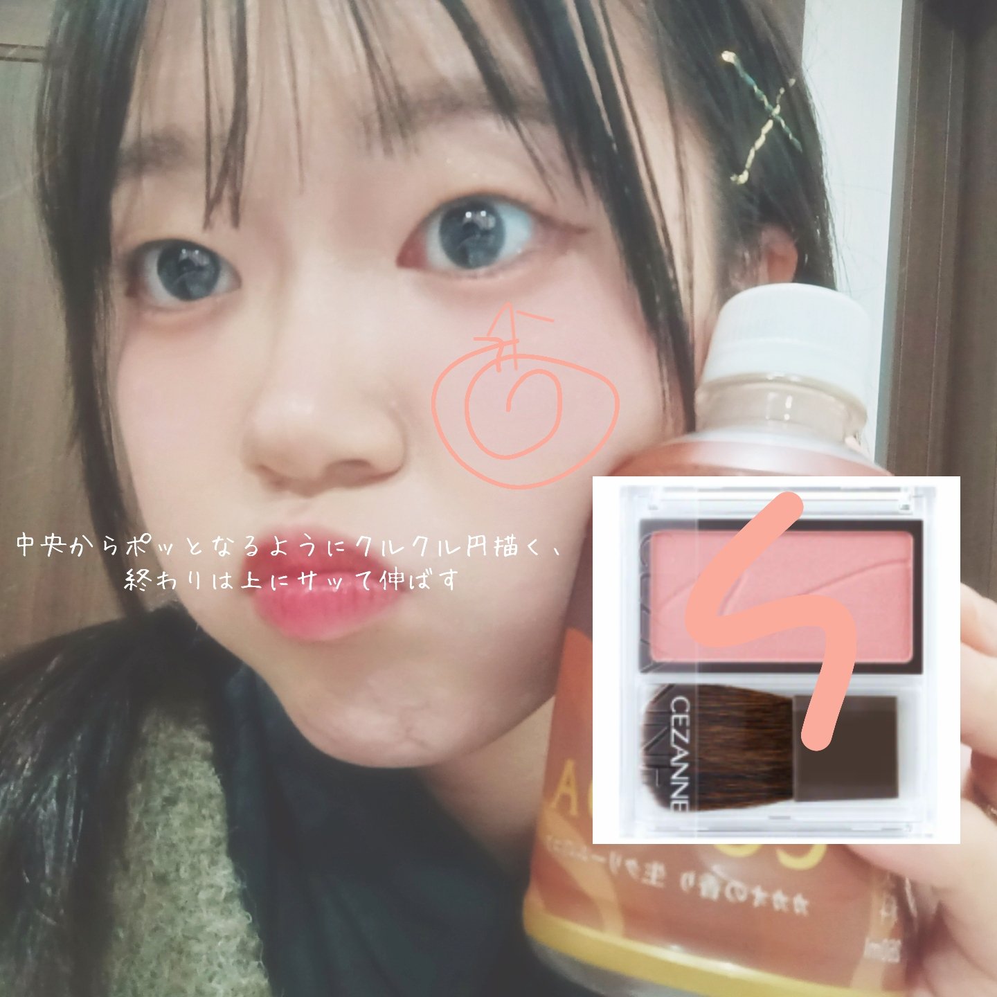 あざとかわいい純粋ぴゅあぴゅあなほっぺが作れるセザンヌのチーク。ミルクモーヴより若干赤みが強い感じで、ぽてっと感が出るよ! チークを主役にしたい時にも使えるし、控えめにしたい時は薄く取って頬骨の1番高い位置に使うと綺麗に見える! このチーク使う時は黒目の下の頬に丸く塗ったりするのだとちょっと赤くなりすぎるから、チーク使い慣れてる人にオススメかも!