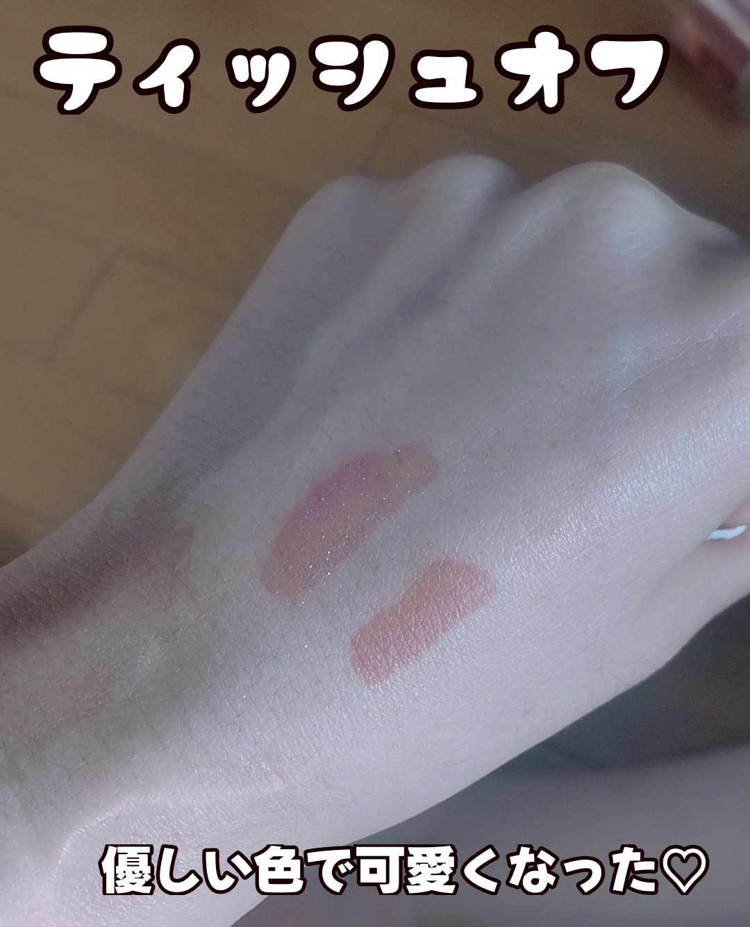 - <01 モーブローズ> リンゴ酸ジイソステアリル、水、ビスジグリセリルポリアシルアジペート-2、ジフェニルシロキシフェニルトリメチコン、トリメチルペンタフェニルトリシロキサン、ジグリセリン、水添ポリイソブテン、グリセリン、ペンチレングリコール、セチルPEG/PPG-10/1ジメチコン、イソステアリン酸ソルビタン、セテアレス-20、フェノキシエタノール、(アクリル酸ヒドロキシエチル/アクリロイルジメチルタウリンNa)コポリマー、スクワラン、クロレラエキス、グルコース、BG、香料、フルクトオリゴ糖、フルクトース、ジラウラミドグルタミドリシンNa、エチルヘキシルグリセリン、ポリソルベート60、エチレンジアミンジコハク酸3Na、水酸化Al、ポリアクリル酸アンモニウム、1,2-ヘキサンジオール、テトラ(ジ-t-ブチルヒドロキシヒドロケイヒ酸)ペンタエリスリチル、パルミチン酸エチルヘキシル、マルトデキストリン、アボカドエキス、トリベヘニン、パルミチン酸スクロース、水添レシチン、マカデミア種子油、オリーブ果実油、ホホバ種子油、ブドウ種子油、乳酸、パルミトイルトリペプチド-1 [+/-]酸化チタン、ホウケイ酸(Ca/チタン)、酸化スズ、黄4、黄5、赤104(1)、赤227、青1 <02 メリーコーラル> リンゴ酸ジイソステアリル、水、ビスジグリセリルポリアシルアジペート-2、ジフェニルシロキシフェニルトリメチコン、トリメチルペンタフェニルトリシロキサン、ジグリセリン、水添ポリイソブテン、グリセリン、ペンチレングリコール、セチルPEG/PPG-10/1ジメチコン、イソステアリン酸ソルビタン、セテアレス-20、フェノキシエタノール、(アクリル酸ヒドロキシエチル/アクリロイルジメチルタウリンNa)コポリマー、スクワラン、クロレラエキス、グルコース、BG、香料、フルクトオリゴ糖、フルクトース、ジラウラミドグルタミドリシンNa、エチルヘキシルグリセリン、ポリソルベート60、エチレンジアミンジコハク酸3Na、水酸化Al、ポリアクリル酸アンモニウム、1,2-ヘキサンジオール、テトラ(ジ-t-ブチルヒドロキシヒドロケイヒ酸)ペンタエリスリチル、パルミチン酸エチルヘキシル、マルトデキストリン、アボカドエキス、トリベヘニン、パルミチン酸スクロース、水添レシチン、マカデミア種子油、オリーブ果実油、ホホバ種子油、ブドウ種子油、乳酸、パルミトイルトリペプチド-1 [+/-]酸化チタン、ホウケイ酸(Ca/チタン)、酸化スズ、黄4、黄5、赤104(1)、赤227、青1 <03 サンドモンド> リンゴ酸ジイソステアリル、水、ビスジグリセリルポリアシルアジペート-2、ジフェニルシロキシフェニルトリメチコン、トリメチルペンタフェニルトリシロキサン、ジグリセリン、水添ポリイソブテン、グリセリン、ペンチレングリコール、セチルPEG/PPG-10/1ジメチコン、イソステアリン酸ソルビタン、セテアレス-20、フェノキシエタノール、(アクリル酸ヒドロキシエチル/アクリロイルジメチルタウリンNa)コポリマー、スクワラン、クロレラエキス、グルコース、BG、香料、フルクトオリゴ糖、フルクトース、ジラウラミドグルタミドリシンNa、エチルヘキシルグリセリン、ポリソルベート60、エチレンジアミンジコハク酸3Na、水酸化Al、ポリアクリル酸アンモニウム、1,2-ヘキサンジオール、テトラ(ジ-t-ブチルヒドロキシヒドロケイヒ酸)ペンタエリスリチル、パルミチン酸エチルヘキシル、マルトデキストリン、アボカドエキス、トリベヘニン、パルミチン酸スクロース、水添レシチン、マカデミア種子油、オリーブ果実油、ホホバ種子油、ブドウ種子油、乳酸、パルミトイルトリペプチド-1 [+/-]酸化チタン、ホウケイ酸(Ca/チタン)、酸化スズ、黄4、黄5、赤104(1)、赤227、青1 <04 フィグピーチ> リンゴ酸ジイソステアリル、水、ビスジグリセリルポリアシルアジペート-2、ジフェニルシロキシフェニルトリメチコン、トリメチルペンタフェニルトリシロキサン、ジグリセリン、水添ポリイソブテン、グリセリン、ペンチレングリコール、セチルPEG/PPG-10/1ジメチコン、イソステアリン酸ソルビタン、セテアレス-20、フェノキシエタノール、(アクリル酸ヒドロキシエチル/アクリロイルジメチルタウリンNa)コポリマー、スクワラン、クロレラエキス、グルコース、BG、香料、フルクトオリゴ糖、フルクトース、ジラウラミドグルタミドリシンNa、エチルヘキシルグリセリン、ポリソルベート60、エチレンジアミンジコハク酸3Na、水酸化Al、ポリアクリル酸アンモニウム、1,2-ヘキサンジオール、テトラ(ジ-t-ブチルヒドロキシヒドロケイヒ酸)ペンタエリスリチル、パルミチン酸エチルヘキシル、マルトデキストリン、アボカドエキス、トリベヘニン、パルミチン酸スクロース、水添レシチン、マカデミア種子油、オリーブ果実油、ホホバ種子油、ブドウ種子油、乳酸、パルミトイルトリペプチド-1 [+/-]酸化チタン、ホウケイ酸(Ca/チタン)、酸化スズ、黄4、黄5、赤104(1)、赤227、青1 <05 スコッチショット> リンゴ酸ジイソステアリル、水、ビスジグリセリルポリ