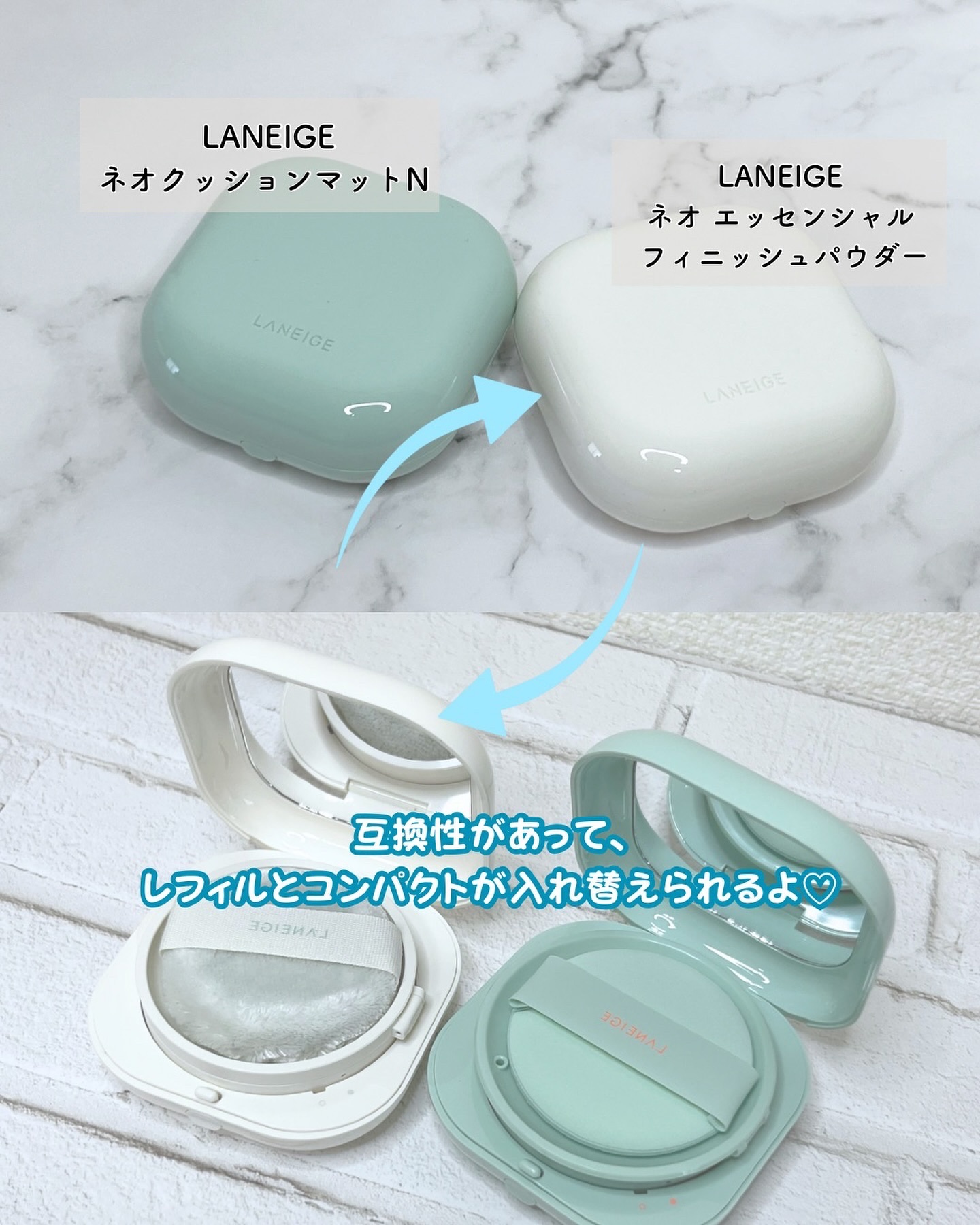 【#LANEIGE】#ネオエッセンシャルフィニッシュパウダー7g¥3,267皮脂・毛穴・肌の凹凸を瞬時にカバーしてマシュマロのようなやわらかな印象の肌にしてくれるにょ🤍そしてまじでサラサラすべすべの肌すぎて、、ずっとさわってまう😩🧡ブルーヒア...